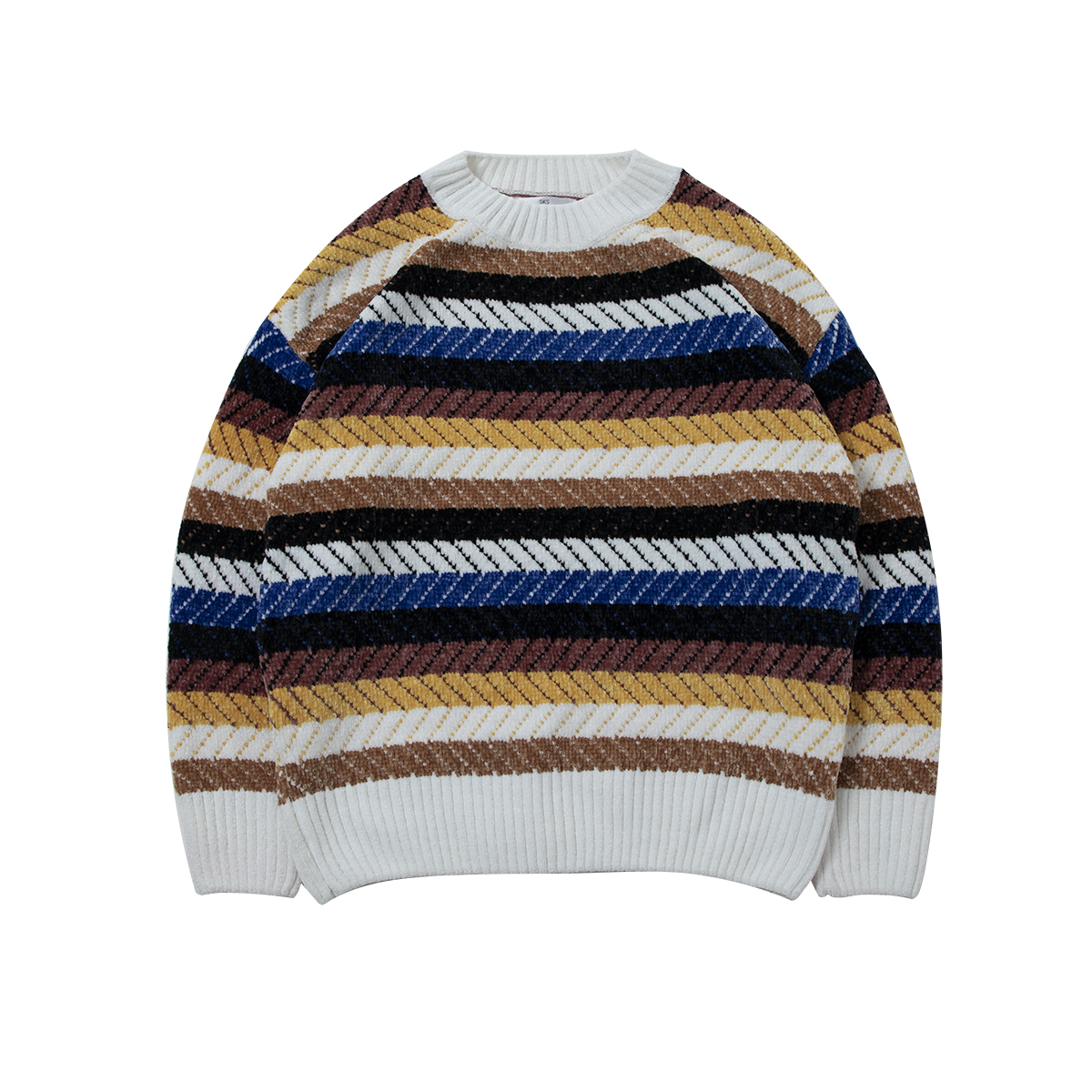 / 新款條紋男士毛衣秋季寬松休閑長袖針織衫韓版潮港風男裝潮流衣服
