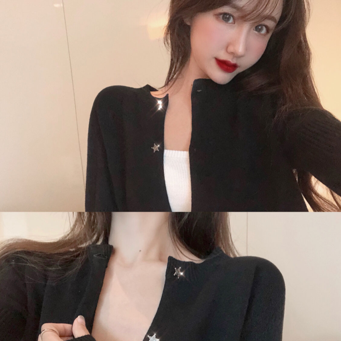 秋裝女2018新款氣質黑色針織開衫外套女短款韓版寬松顯瘦圓領毛衣
