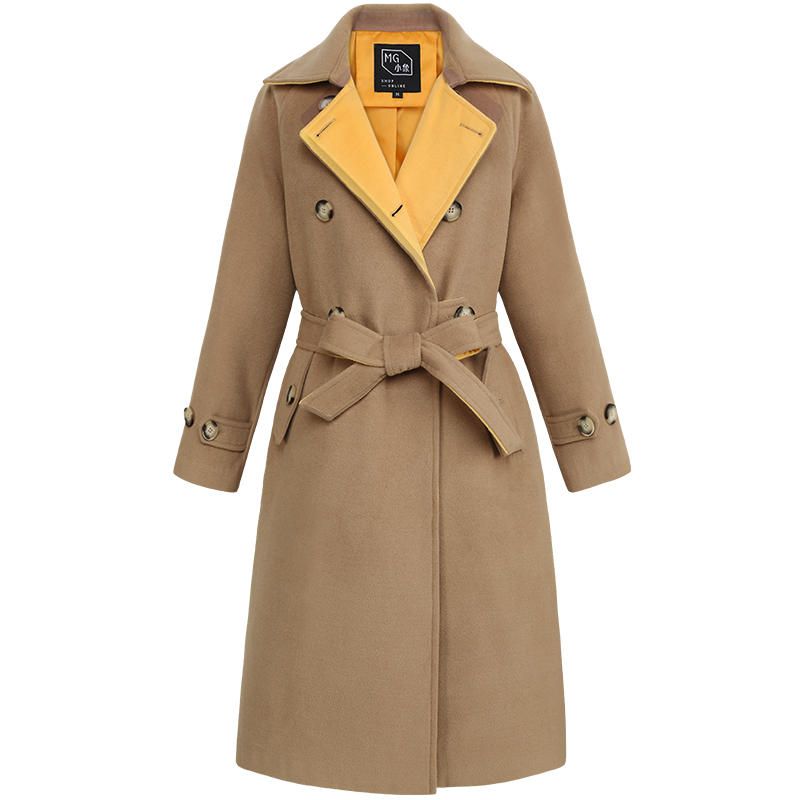 / 【直降120元】【108元雙11清倉】MG小象收腰雙排扣卡其色毛呢大衣