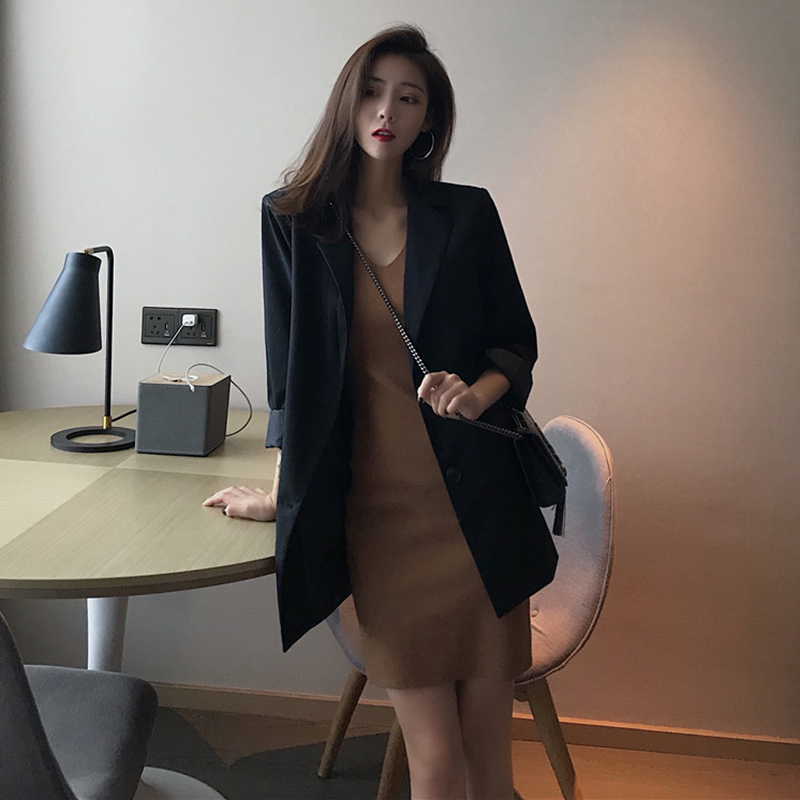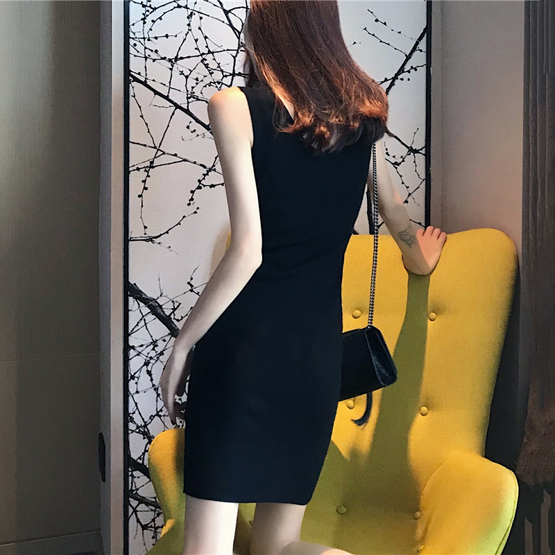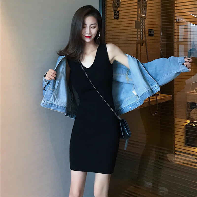 / 氣質修身針織背心裙秋裝女2018新款復古時尚黑色V領包臀連衣裙子