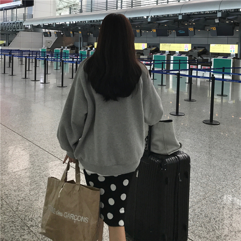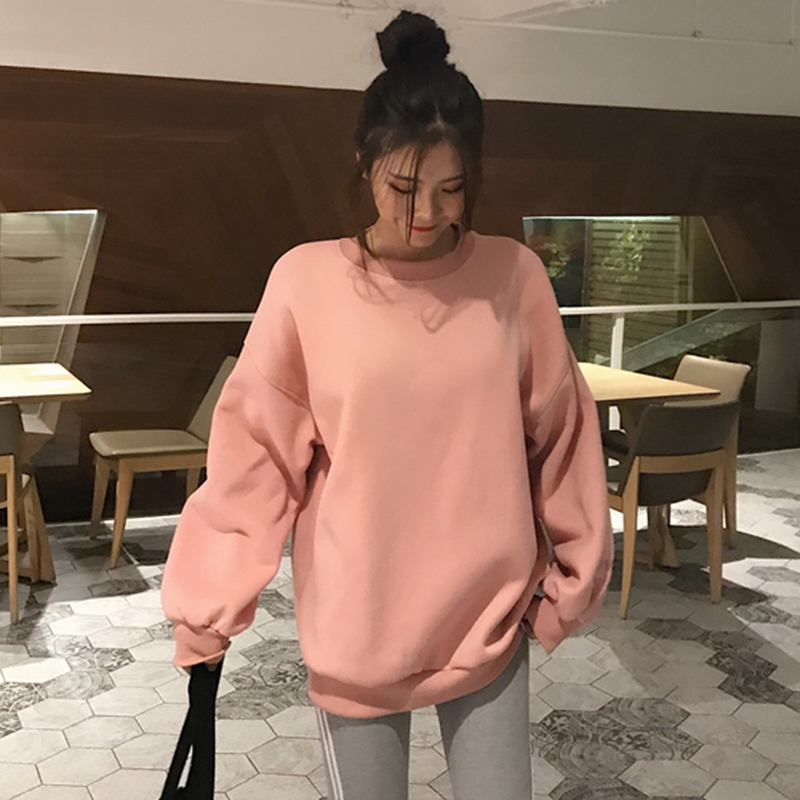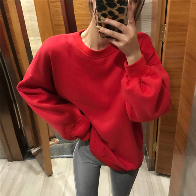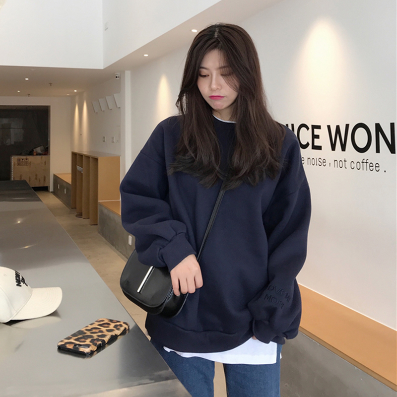 秋冬女裝2018新款韓版百搭寬松套頭衛衣慵懶風袖口字母刺繡外套潮