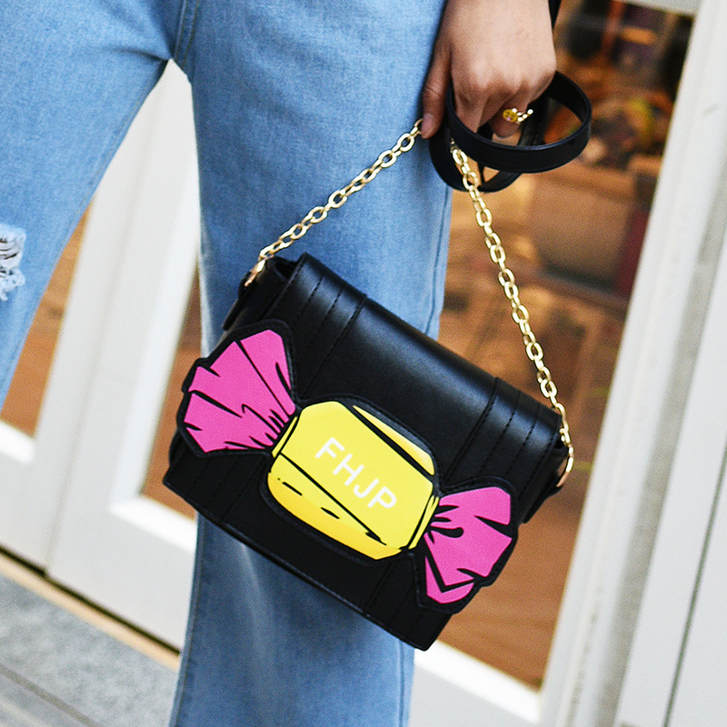 新款可愛糖果撞色鏈條包斜挎包韓版迷你小方包單肩女包小包包