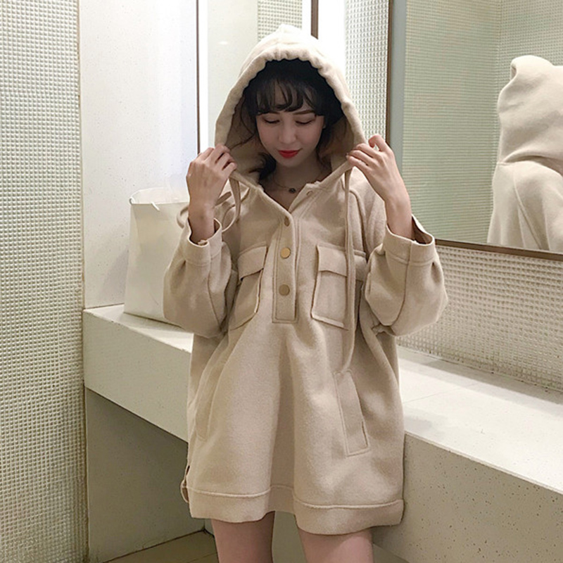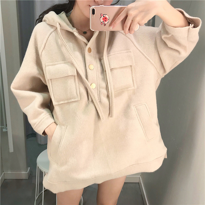 / 港風套頭衛衣女裝秋冬復古羊羔毛外套新款寬松學生長袖連帽上衣潮