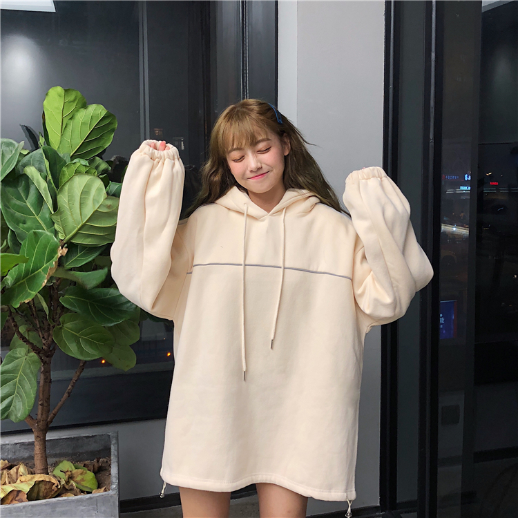 秋冬女裝韓版BF風寬松中長款加絨加厚連帽套頭超火衛衣上衣外套潮