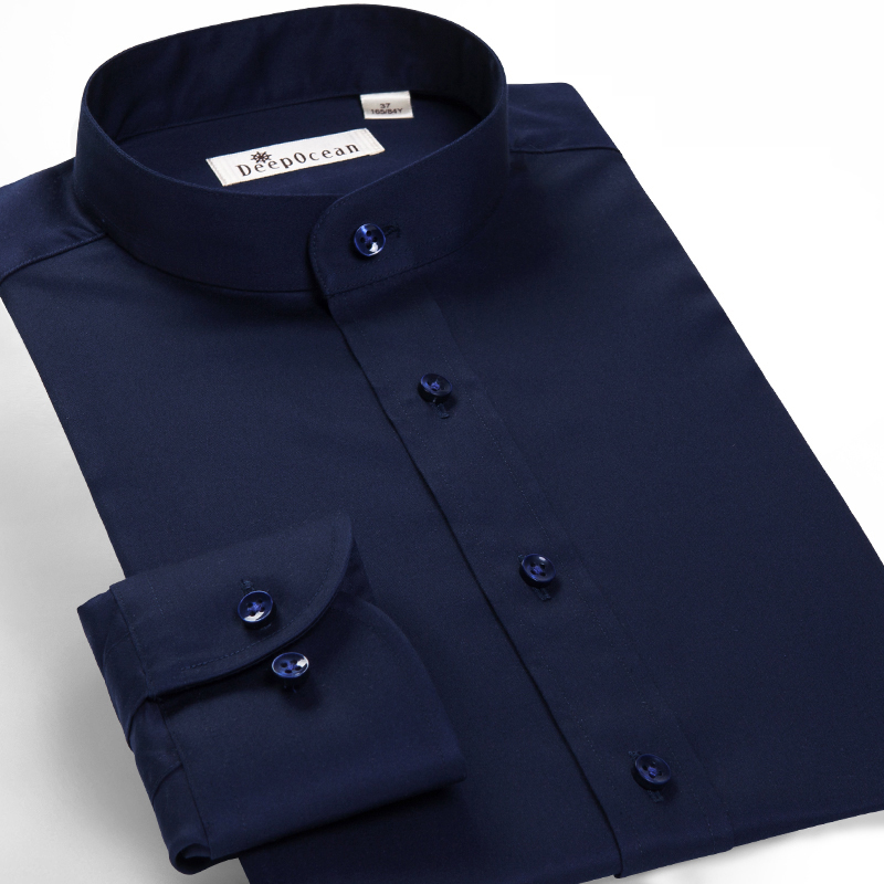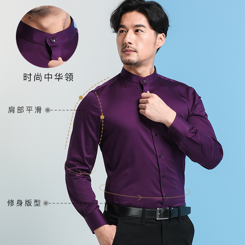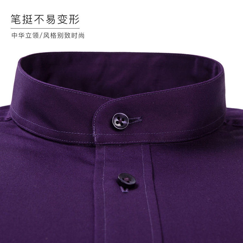 / 圓領立領襯衫男長袖商務休閑修身純棉韓版潮流純色襯衣中國風秋季