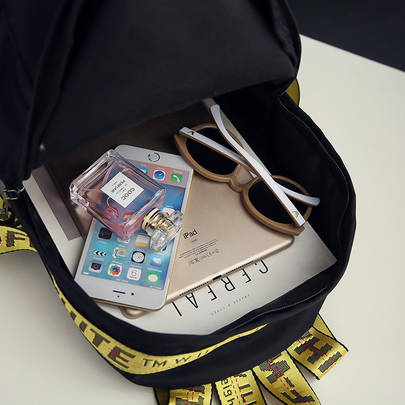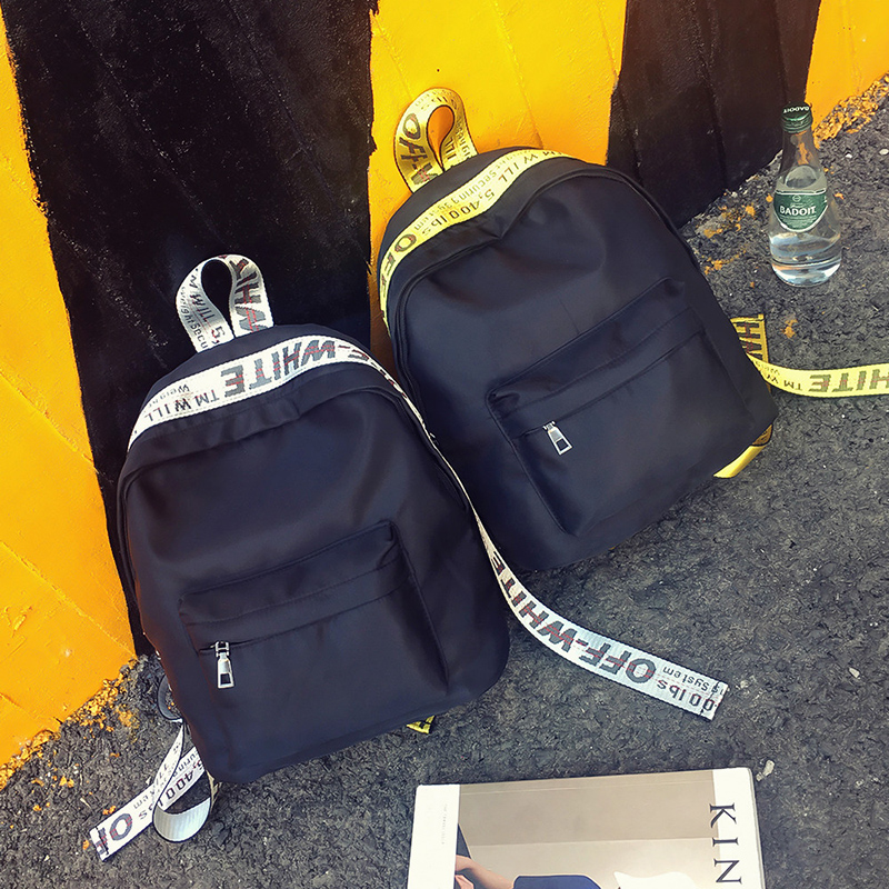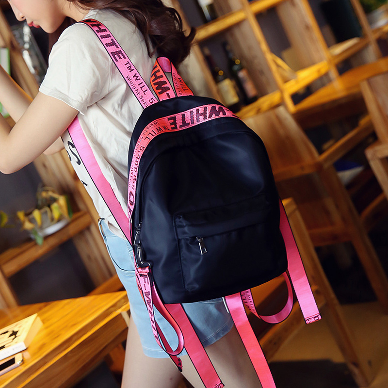 新款女包彩帶撞色雙肩包女韓版學院風個性百搭牛津布背包書包