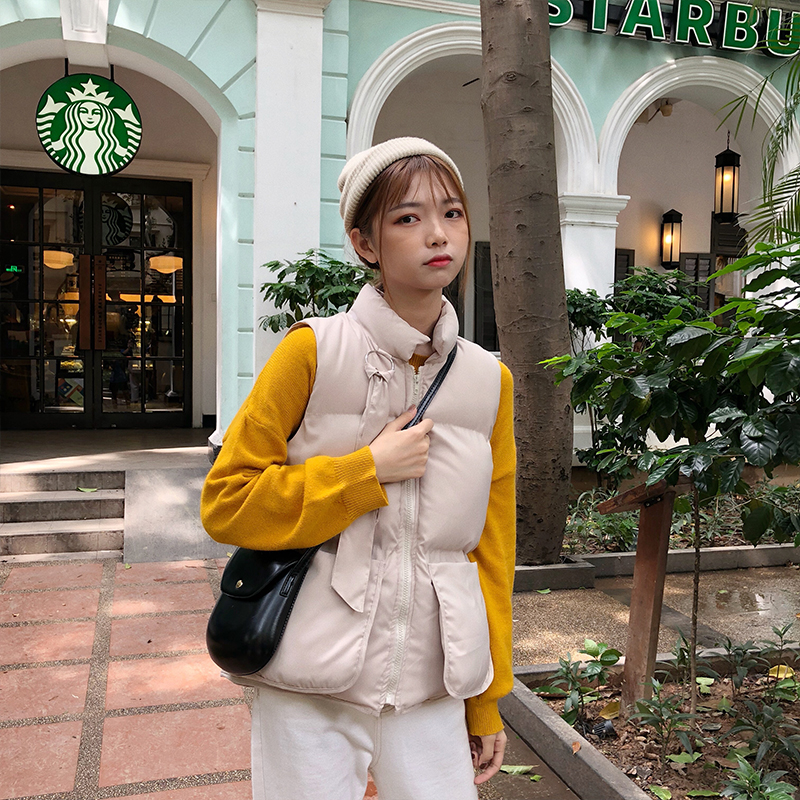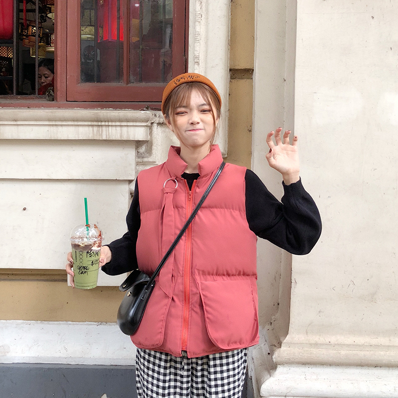 2018新款冬季韓版寬松夾棉加厚保暖面包服無袖棉衣棉服馬甲外套女