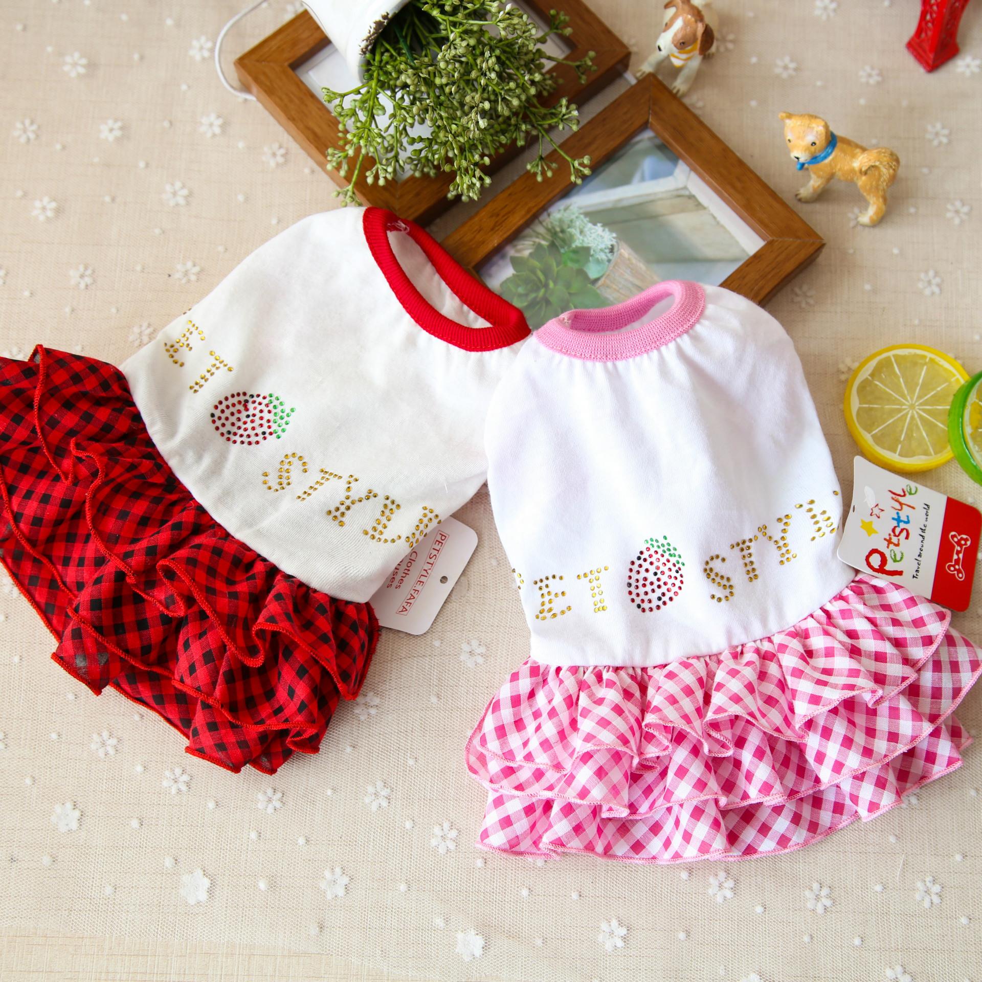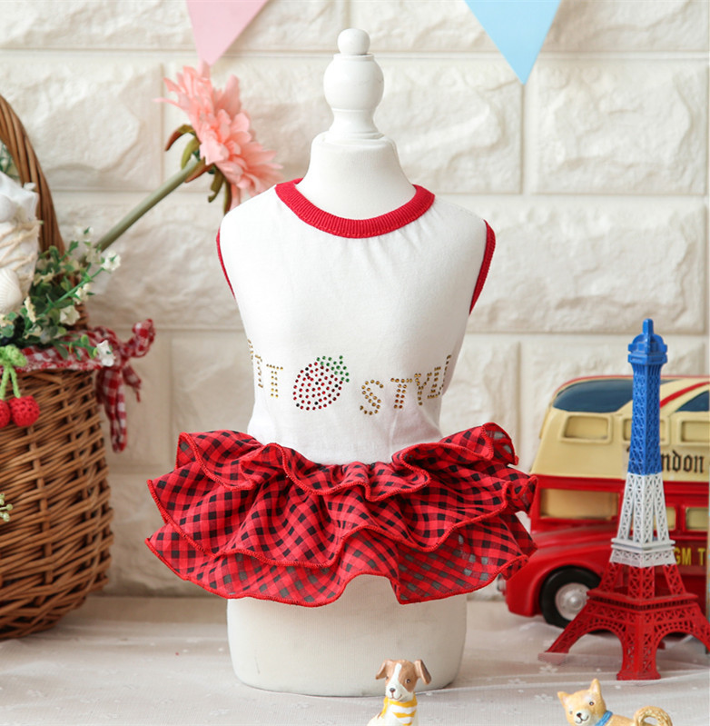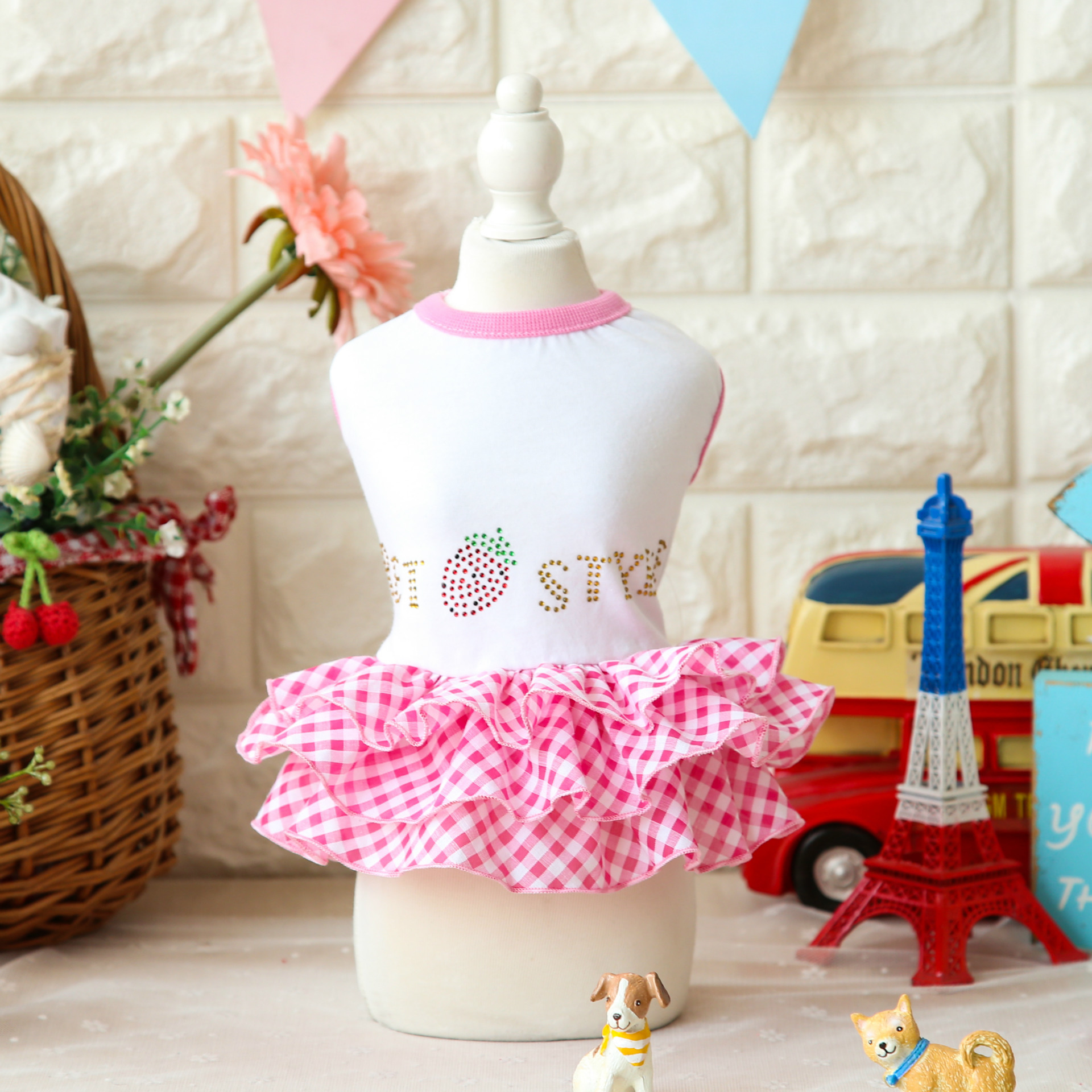 原宿風の燙鉆小草莓連衣裙~約克夏裙子泰迪春夏裝博美比熊背心裙