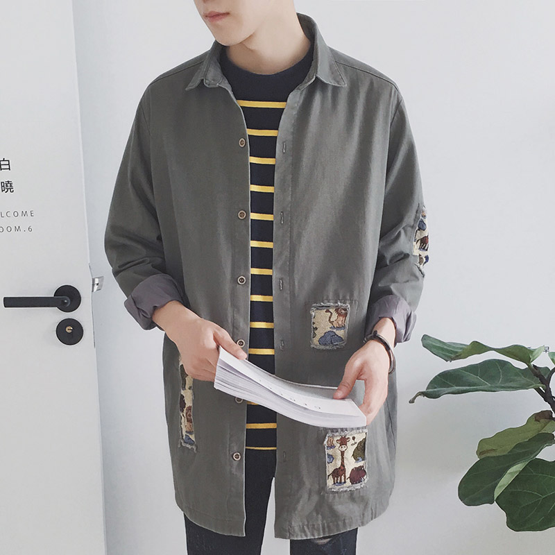/ 秋季中長款風衣男休閑男士夾克大衣韓版潮衣服男潮流外套原宿男裝