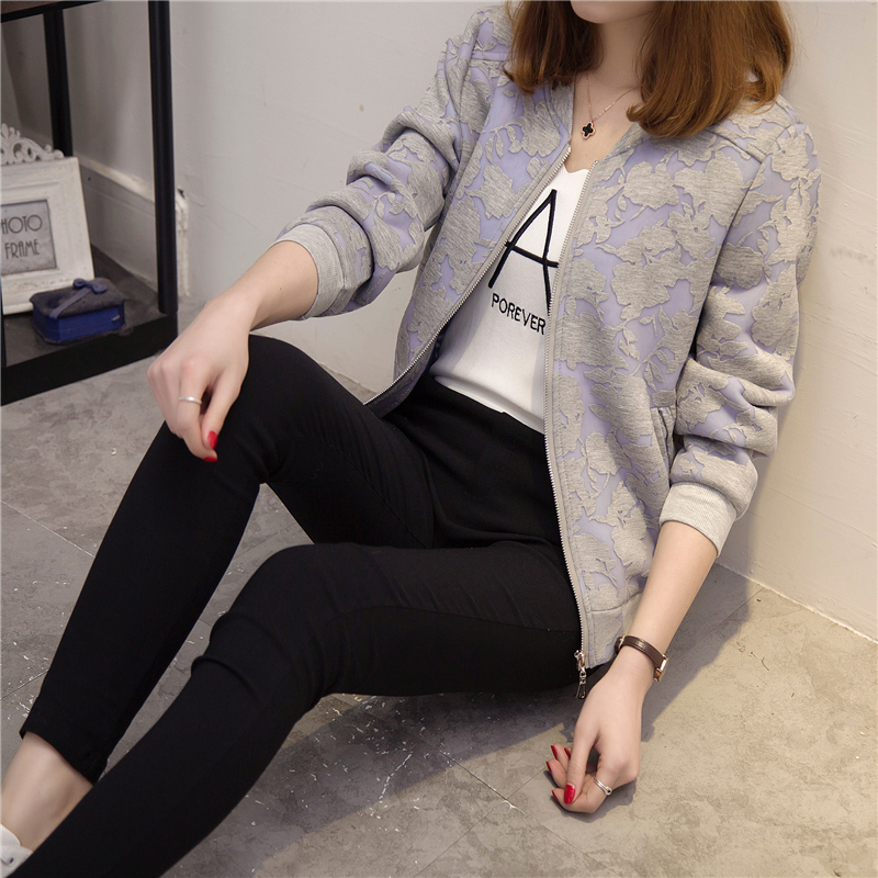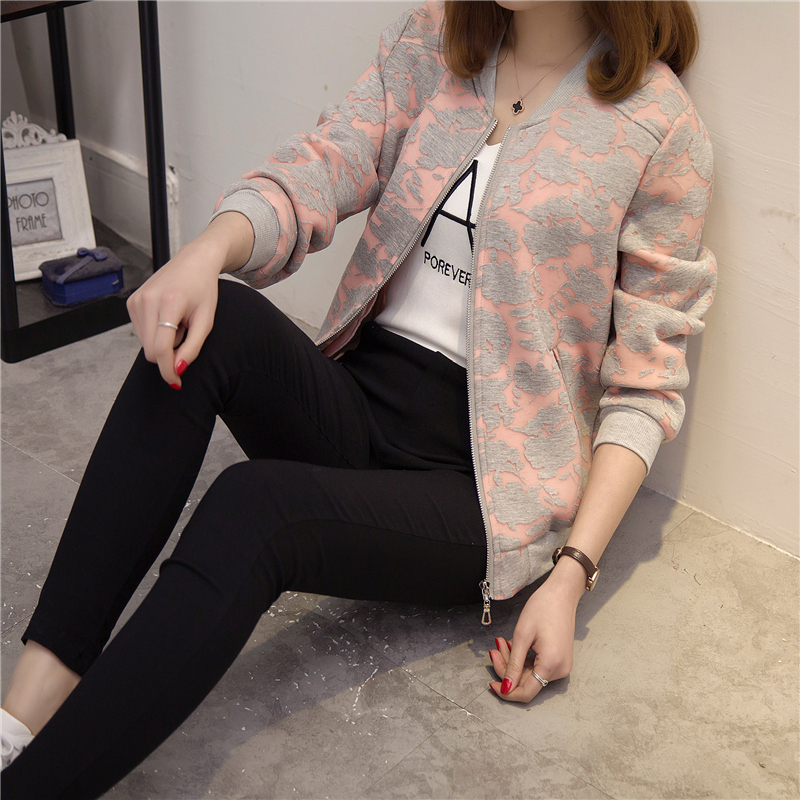 / 秋冬裝新款女裝韓版寬松大碼印花短外套夾克女外套百搭棒球服
