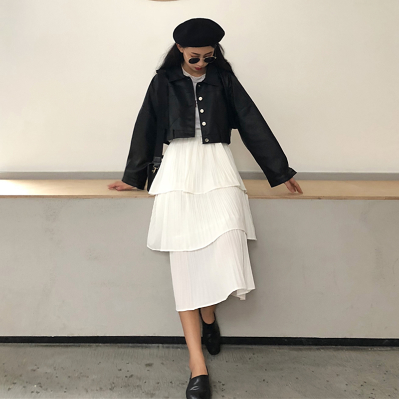 套裝女秋冬2018新款秋裝t恤白色蛋糕半身裙子網紅兩件套上衣顯瘦