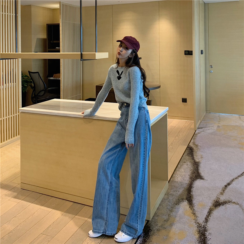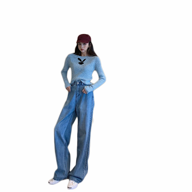 港味復古chic風褲子慵懶風寬松顯瘦直筒褲高腰顯瘦微喇叭牛仔長褲