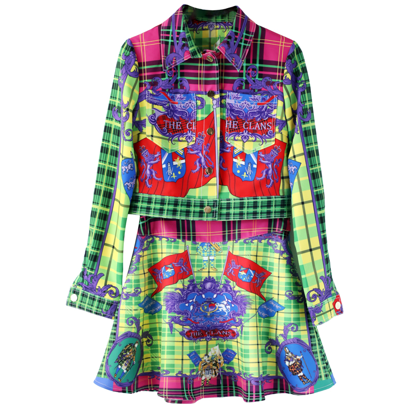 2018秋季新款長袖印花襯衫上衣半身短裙網紅休閑兩件套套裝女潮