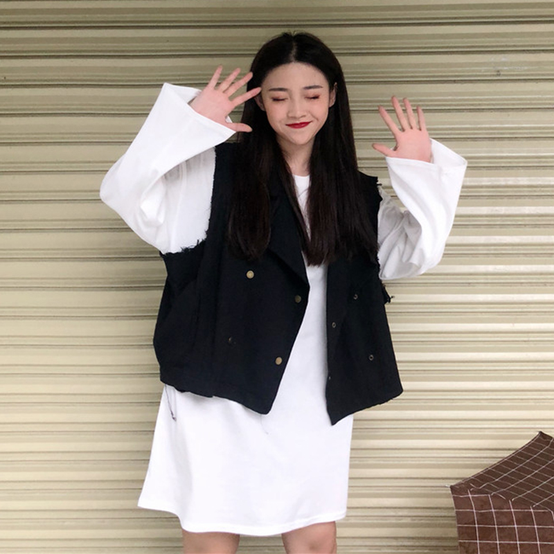 棉馬夾女新款2018韓版秋季牛仔馬甲女春秋款t恤兩件套女寬松外套