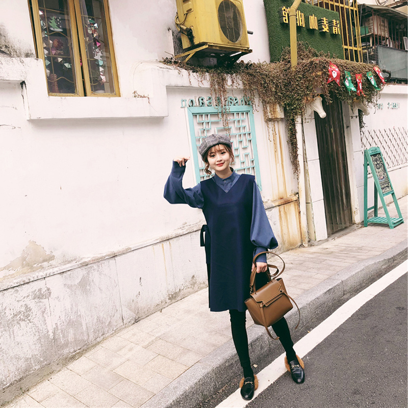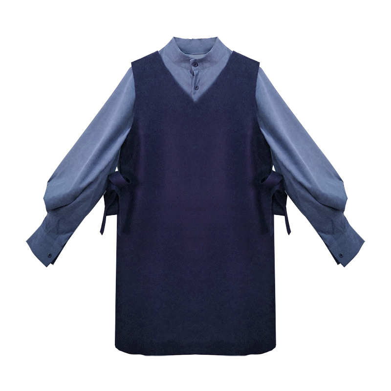 晚晚風復古襯衣配馬甲酷毛衣背心裙寬松裙子蹦迪網紅兩件套裝秋潮