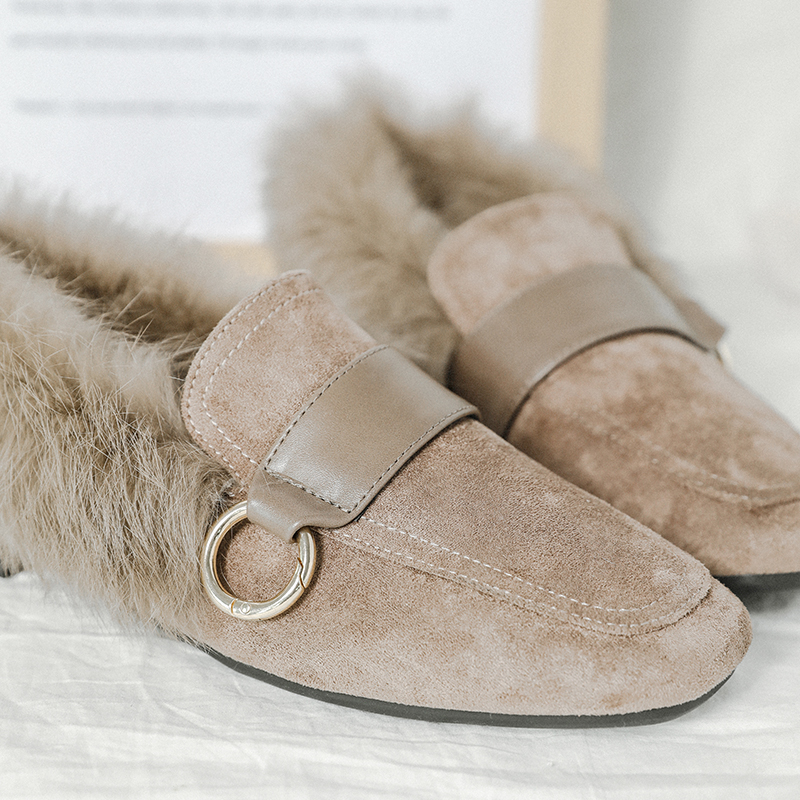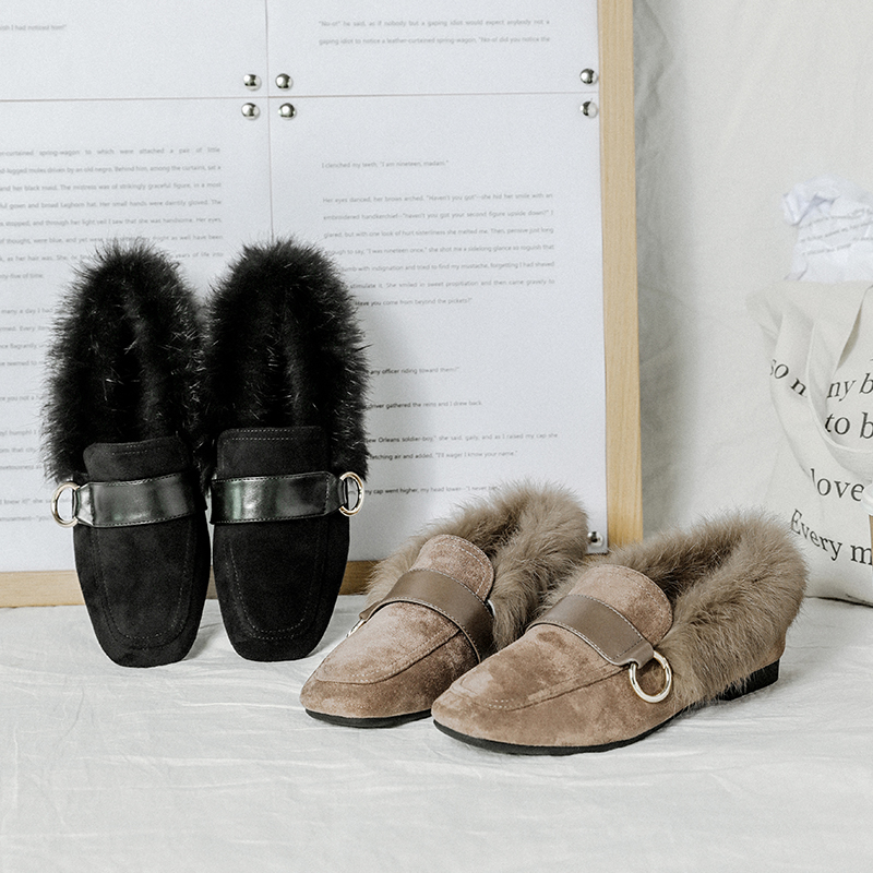 MG小象懶人一腳蹬女鞋冬季2018新款加絨保暖時尚淺口磨砂平底鞋子