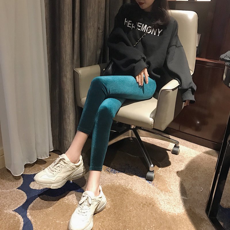 / 褲子秋冬復古chic韓版新款絲絨打底褲時尚保暖女百搭外穿緊身長褲