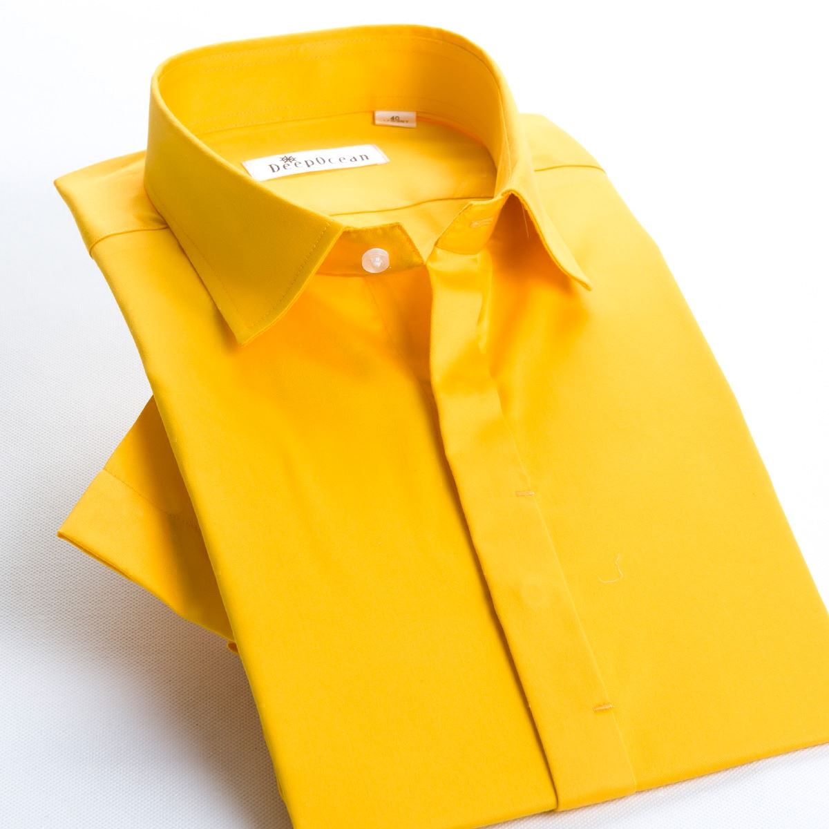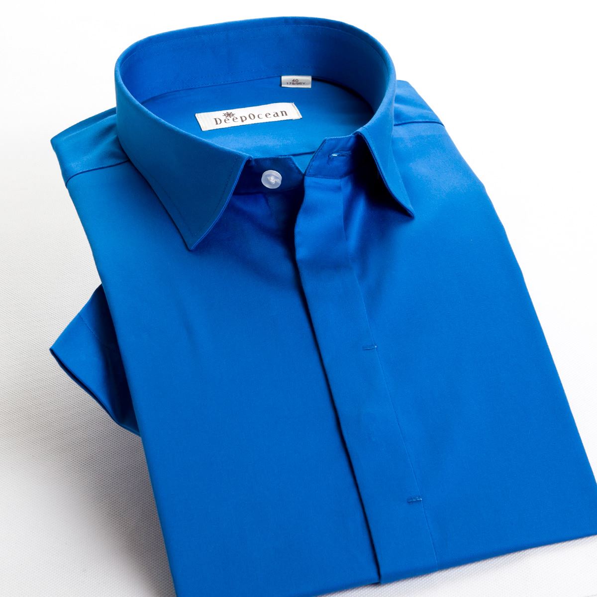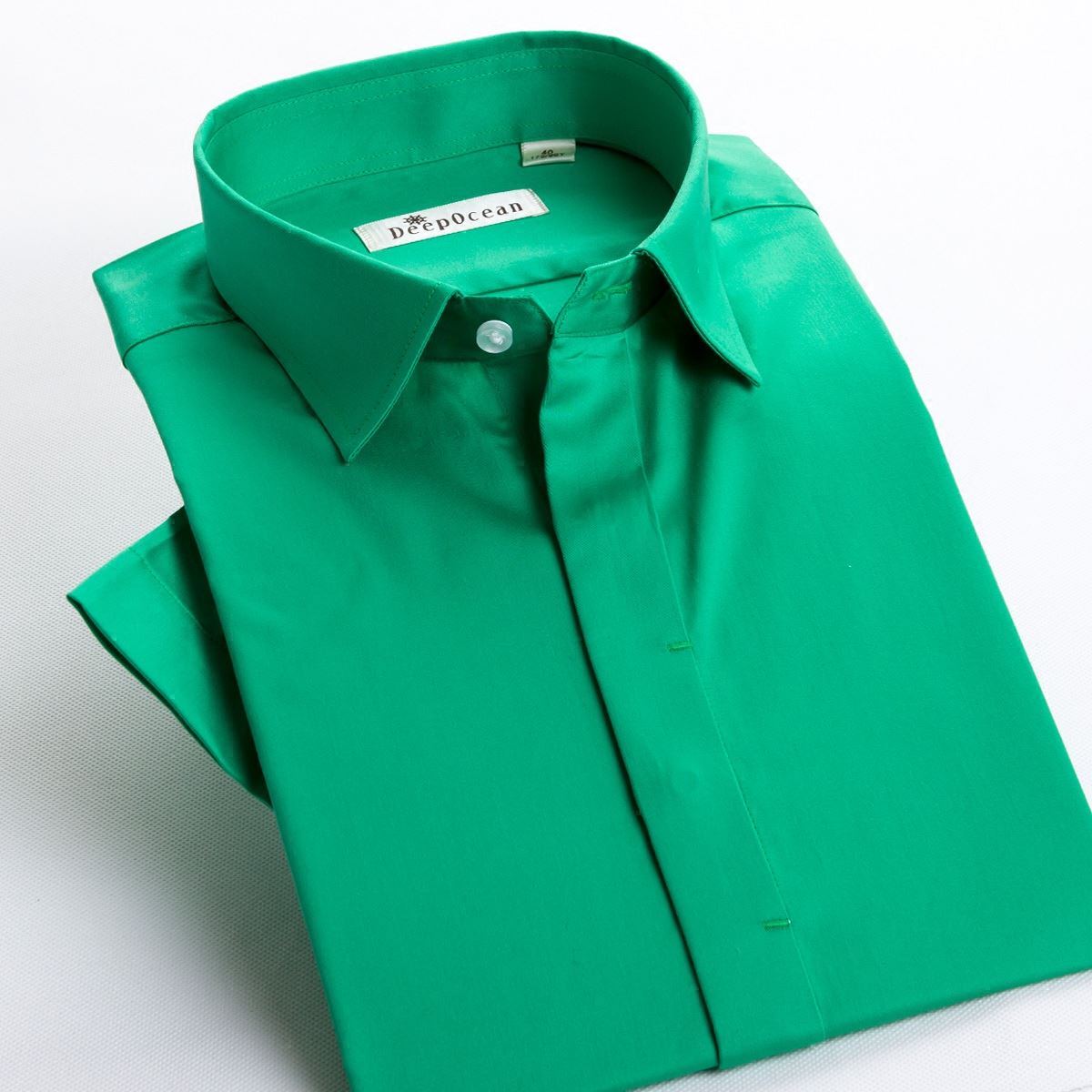 / 夏新款雙絲光棉短袖襯衫男式修身韓版糖果色休閑薄款半袖襯衣