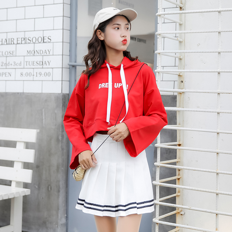 / 時尚字母印花連帽衛衣女秋裝新款學院風寬松短外套休閑長袖上衣潮