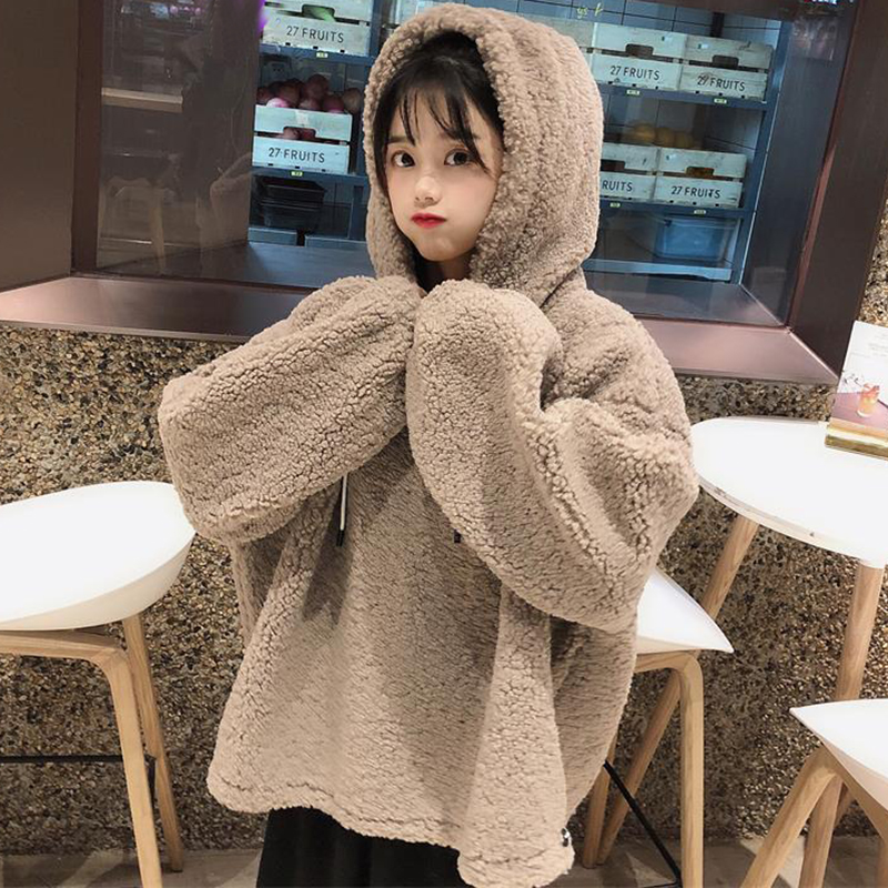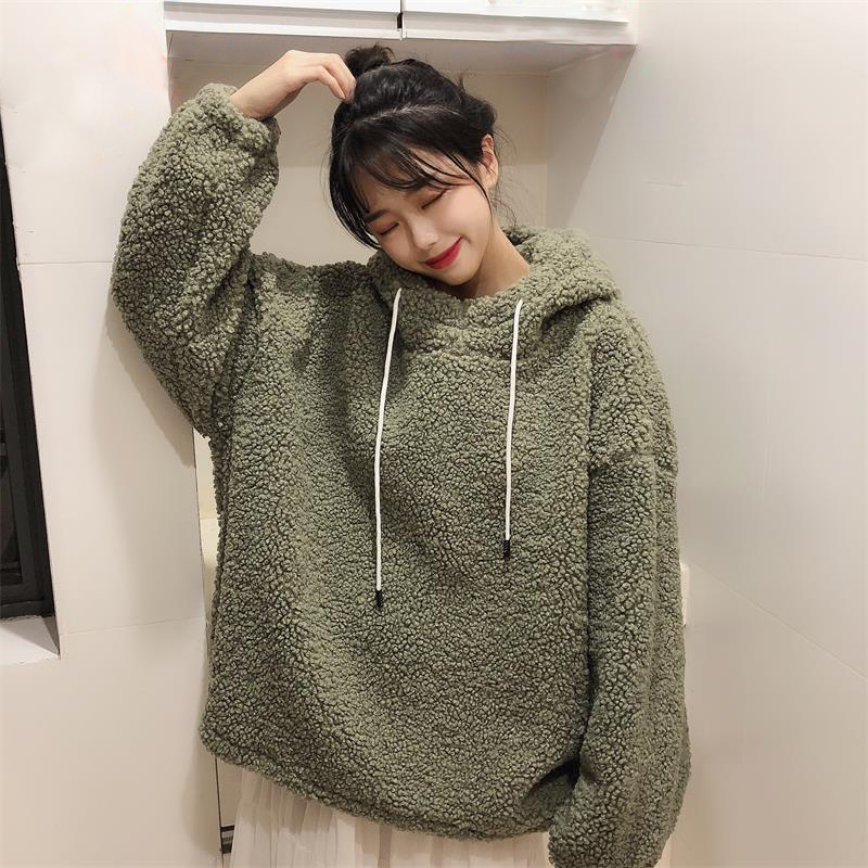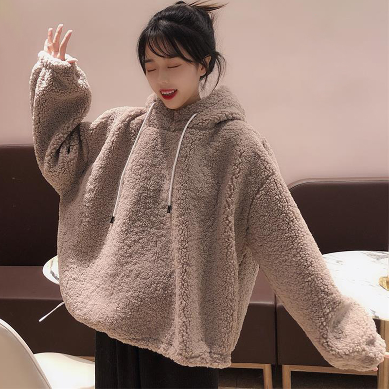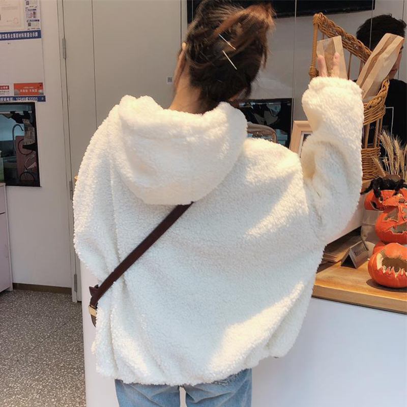 寬松連帽衛衣2018新款女秋冬裝港風羊羔絨外套學生長袖白色上衣潮