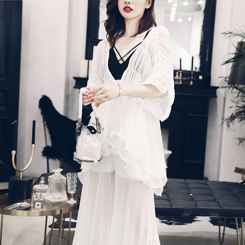 套裝女2018夏新款度假慵懶風港味氣質女神網紅闊腿褲時尚兩件套