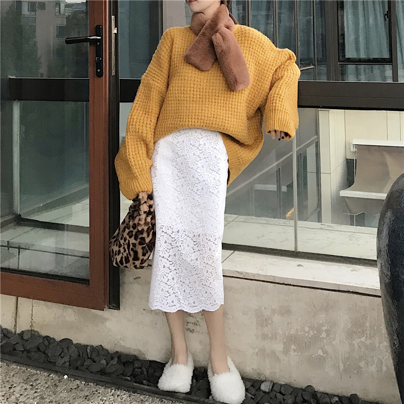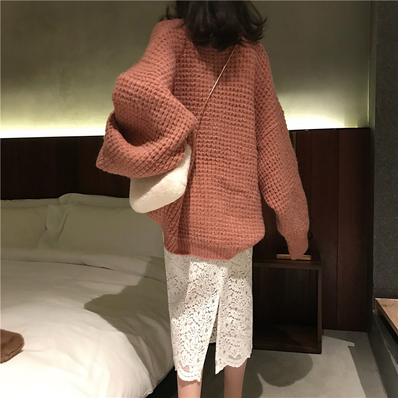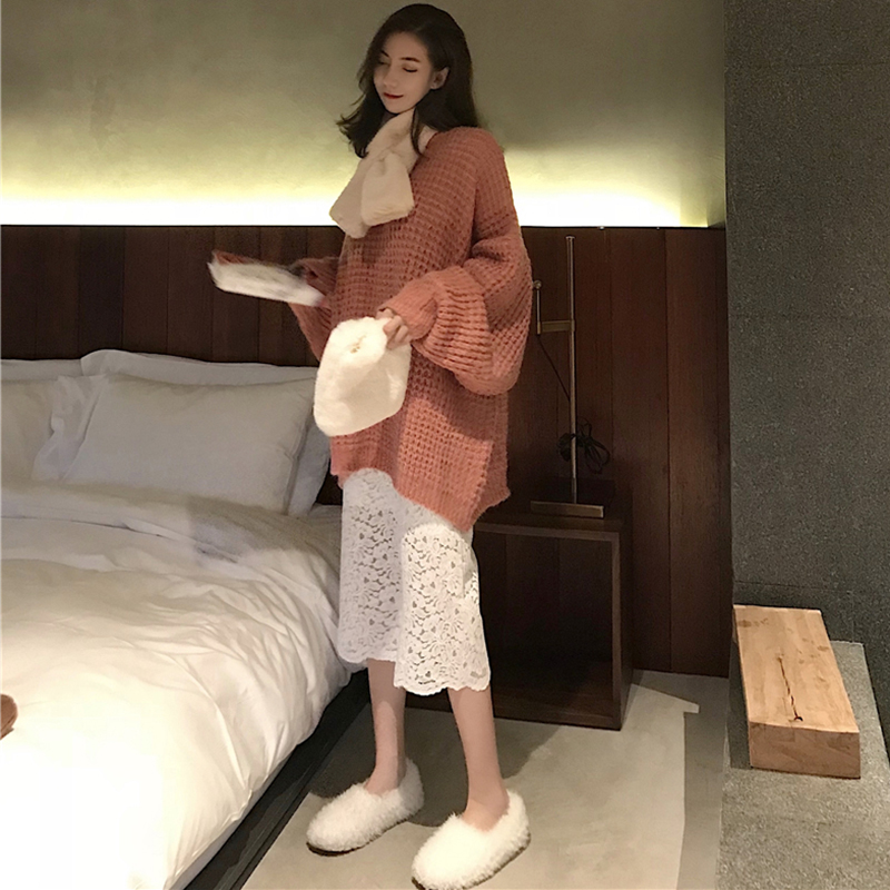/ 赫本風套裝女秋冬新款寬松慵懶毛衣針織外套高腰顯瘦蕾絲半身裙子