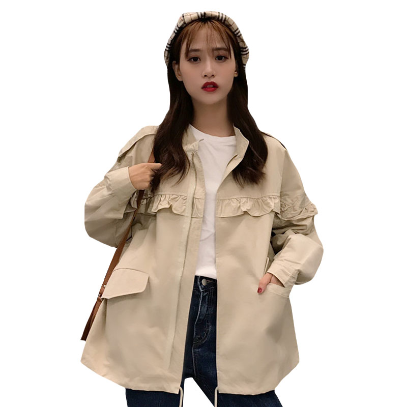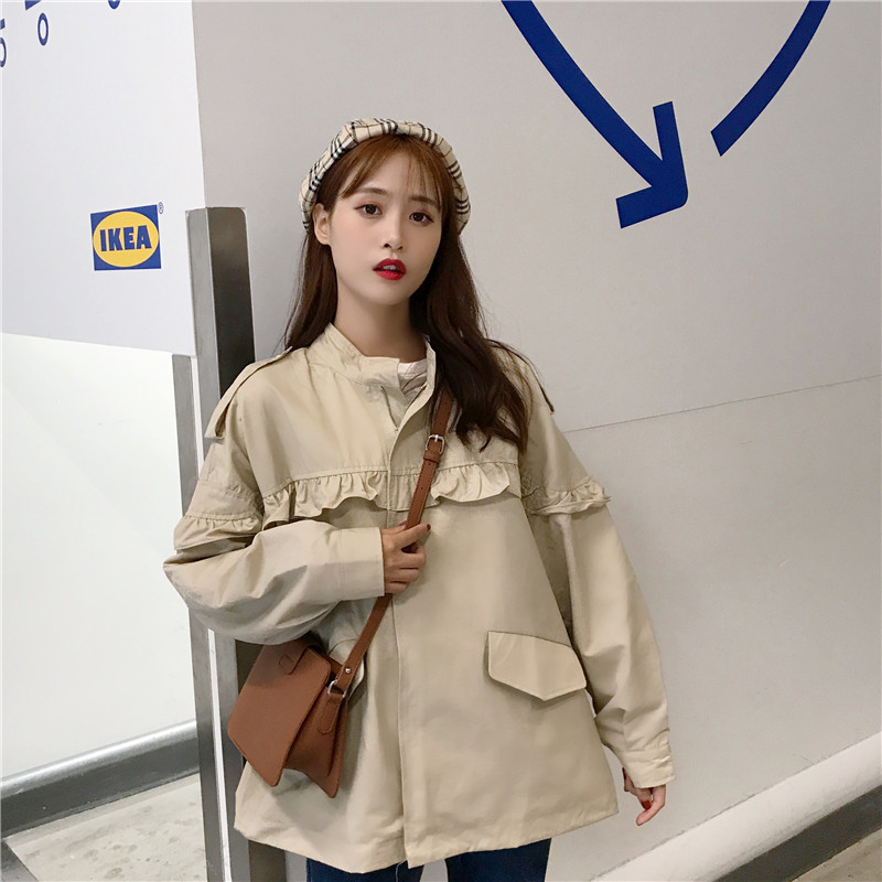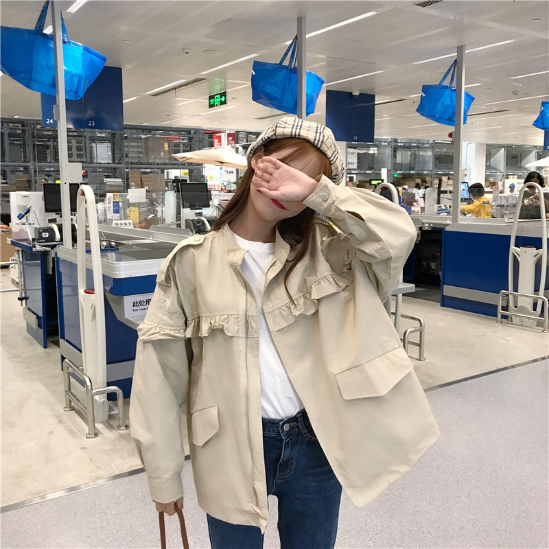 秋季女裝2018新款韓版復古工裝中長款木耳邊休閑寬松夾克上衣外套