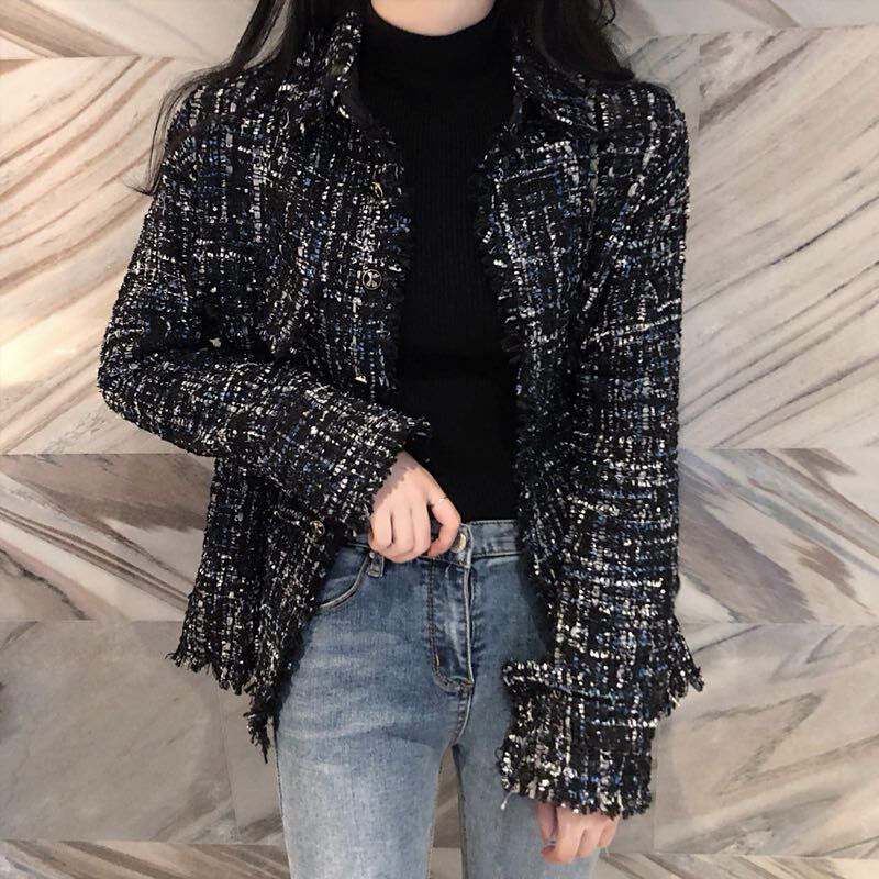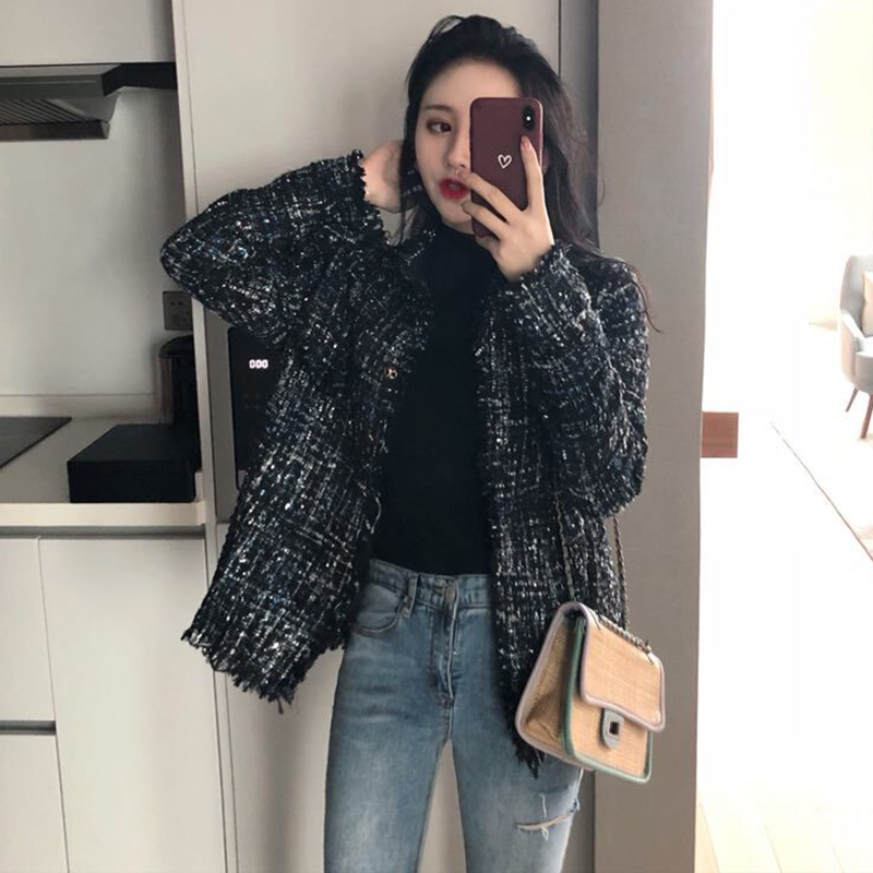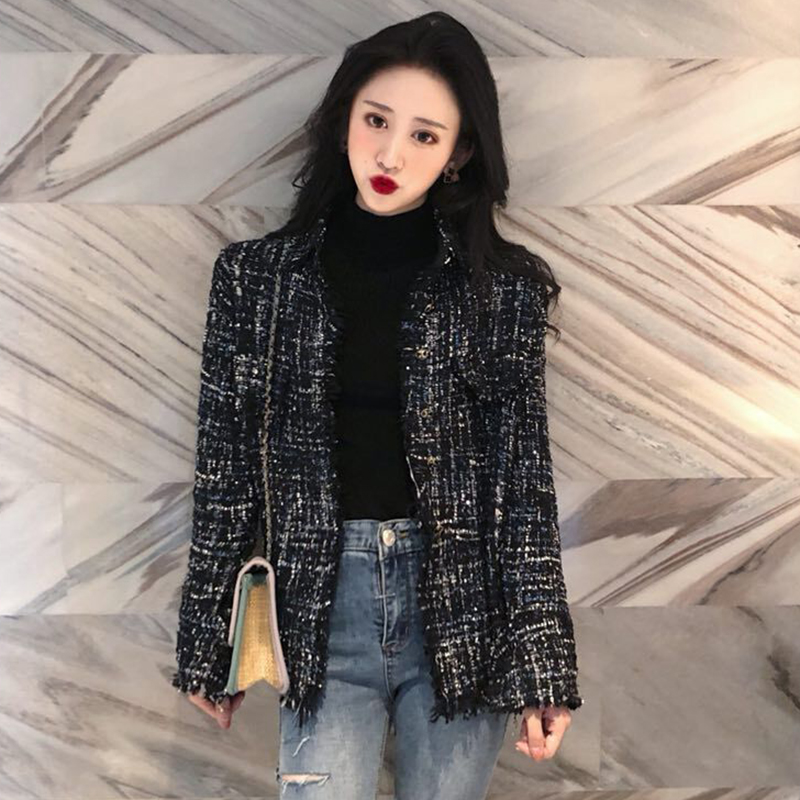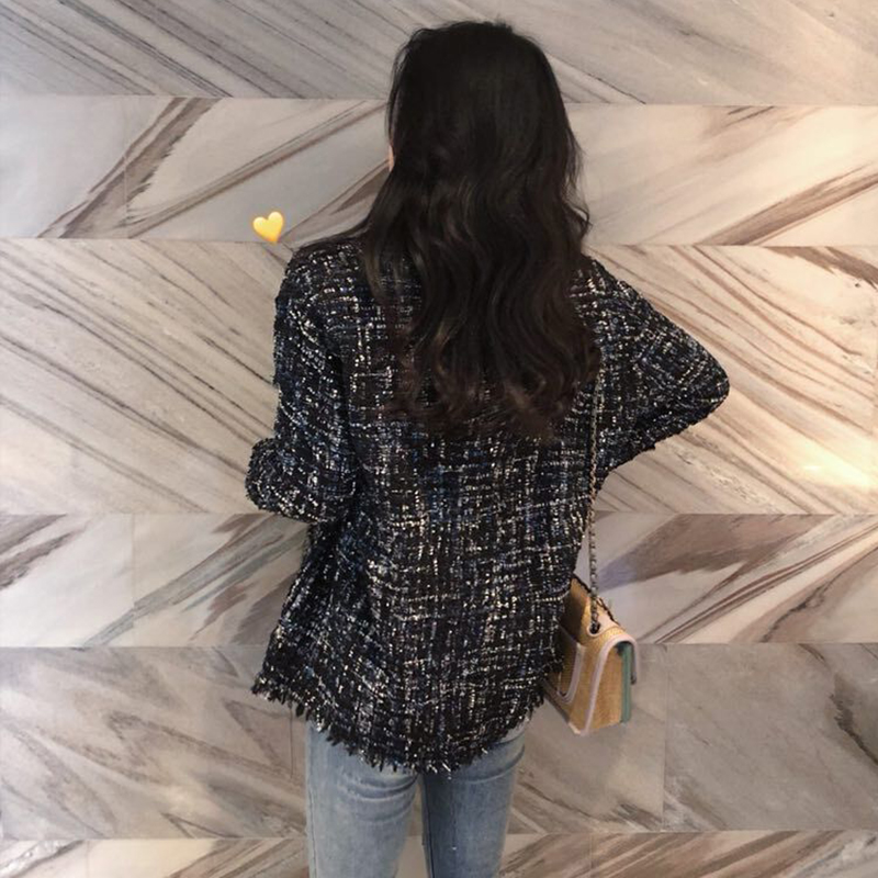 秋冬女裝2018新款流行粗花毛呢外套寬松呢子大衣時尚休閑開衫上衣