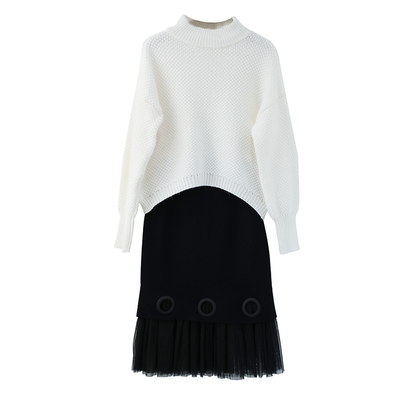 氣質時尚套裝女2018新款秋冬季高領針織毛衣裙子洋氣兩件套半身裙