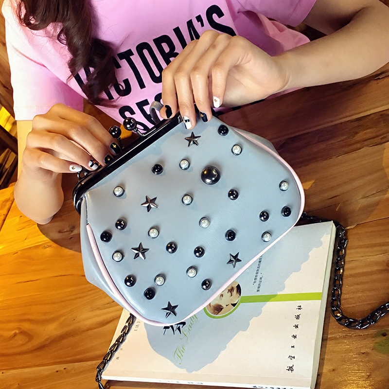 / 鏈條包包女新款潮撞色鉚釘單肩女包小包貝殼包韓版百搭斜挎包