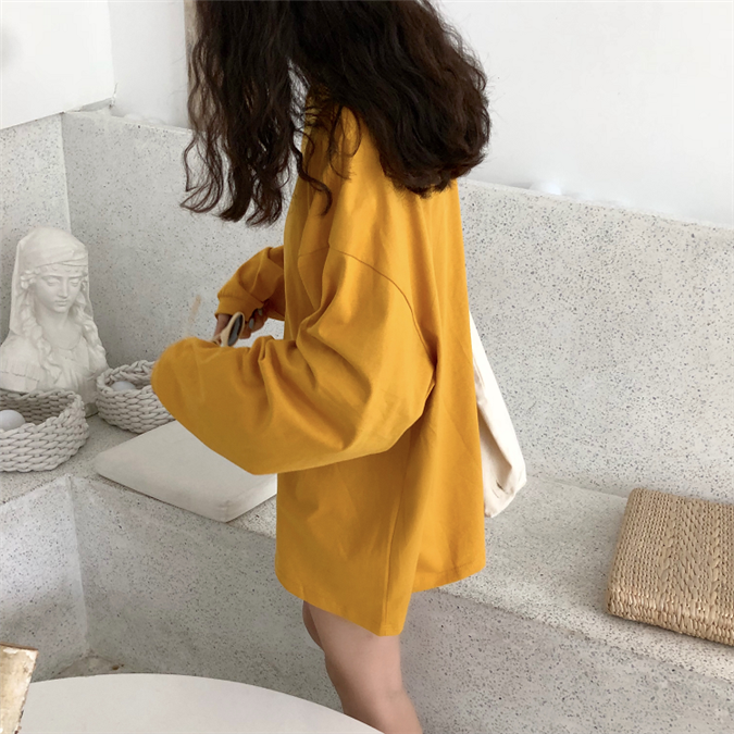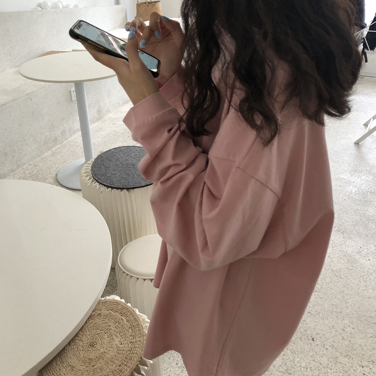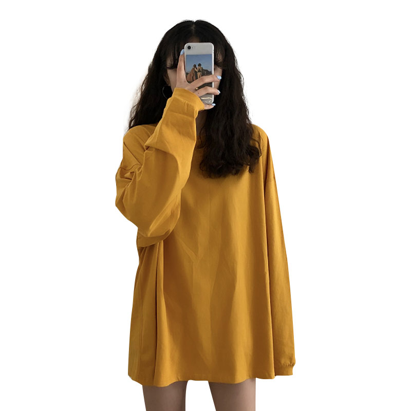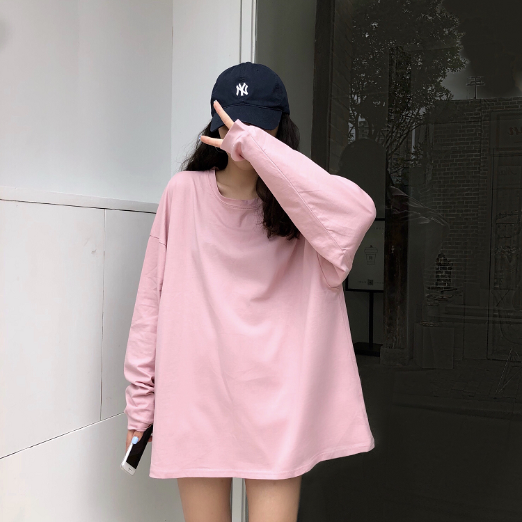 秋裝女裝韓版BF風寬松百搭慵懶純色長袖T恤中長款圓領上衣體恤潮