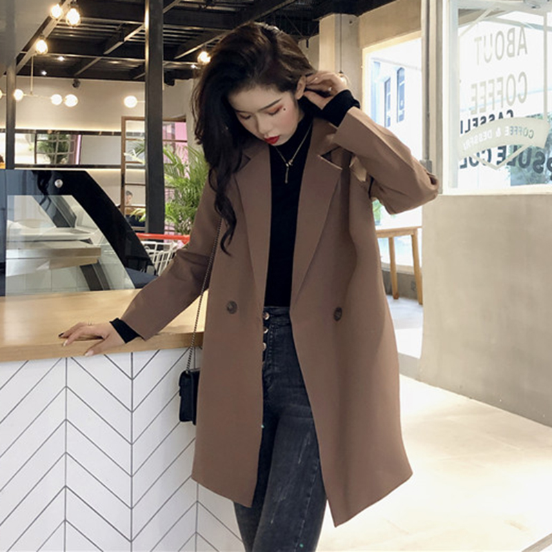 黑色氣質中長外套秋裝女2018新款港風寬松女士西裝慵懶洋氣上衣潮