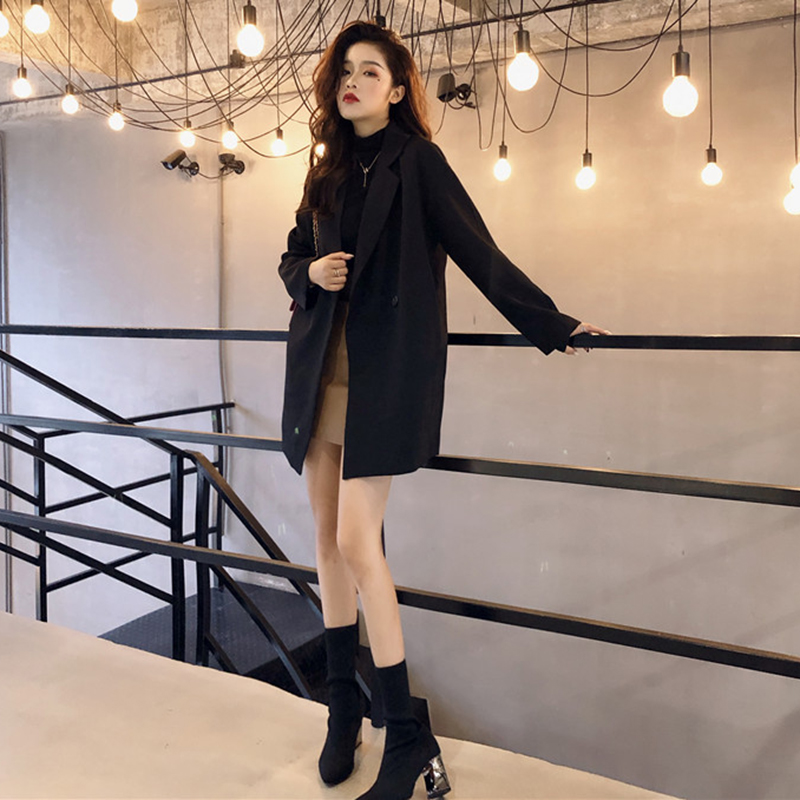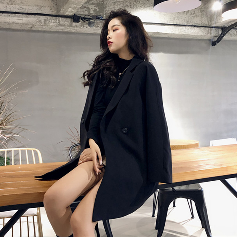 / 黑色氣質中長外套秋裝女2018新款港風寬松女士西裝慵懶洋氣上衣潮