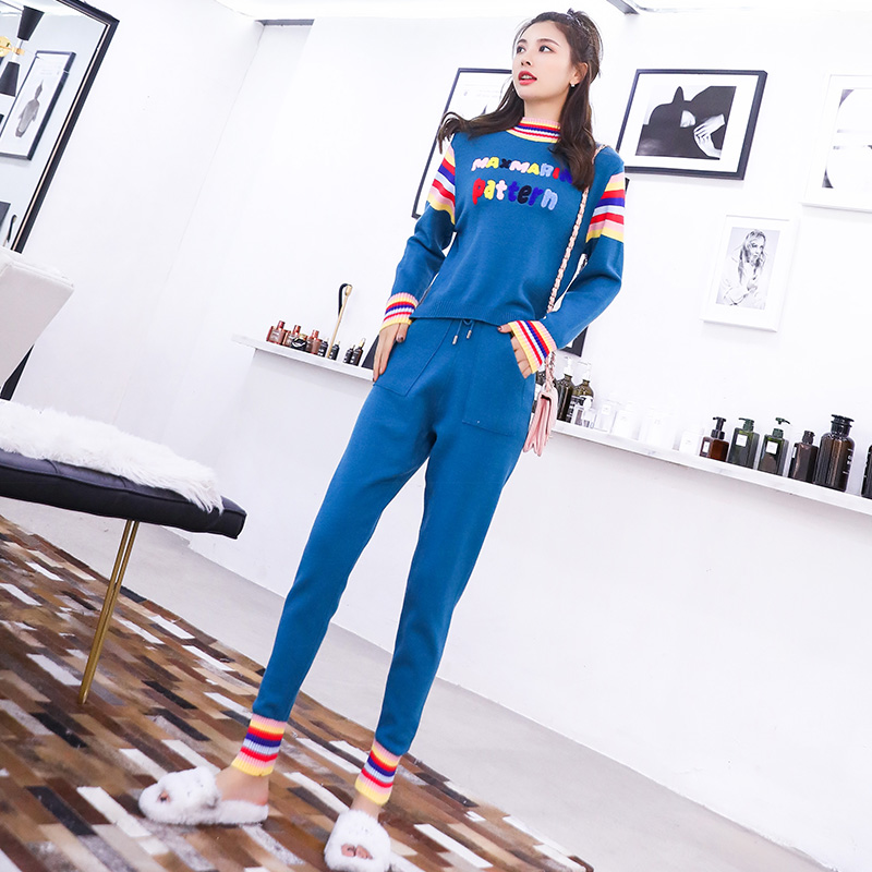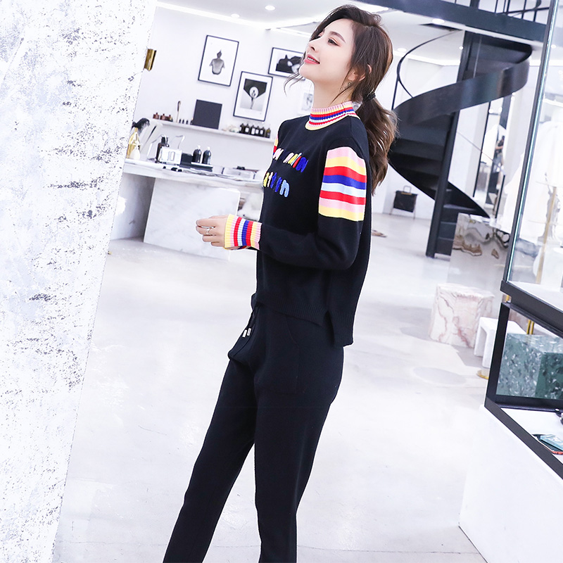 / 女士秋冬季針織長袖運動服休閑套裝女秋裝時尚兩件套2018新款韓版