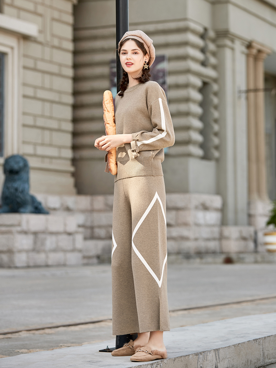 / MG小象慵懶風套頭毛衣女2018新款寬松高腰闊腿褲子圓領chic上衣潮