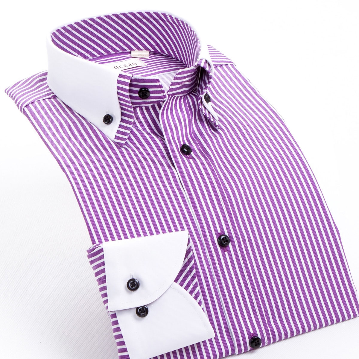 / 深海商務正裝襯衫男式長袖韓版修身型紳士藍色時尚條紋襯衣男裝秋