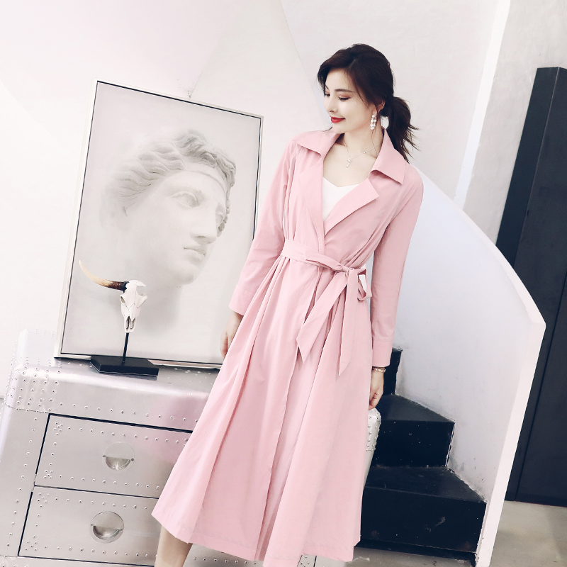 / S秀2018秋裝新款名媛氣質時尚西裝領長袖風衣女寬松中長款外套