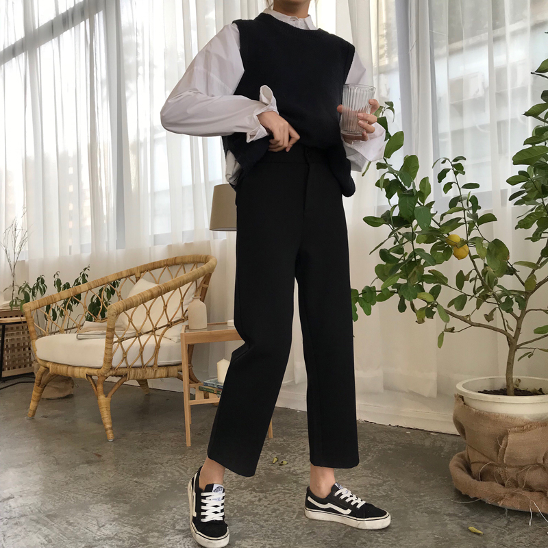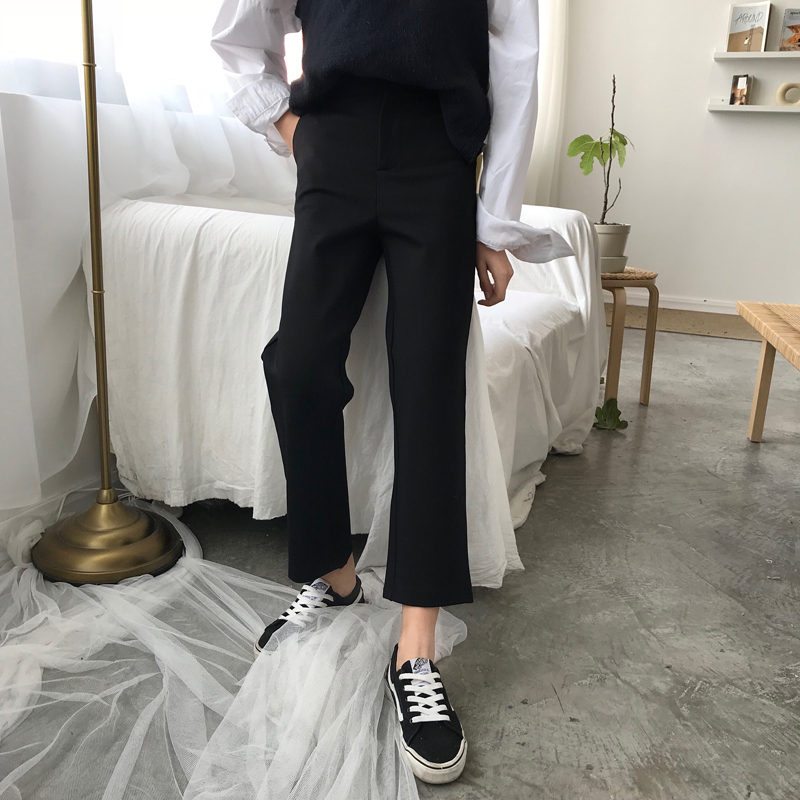 / 秋裝女裝韓版寬松顯瘦松緊腰高腰直筒褲九分褲休閑褲闊腿褲長褲潮