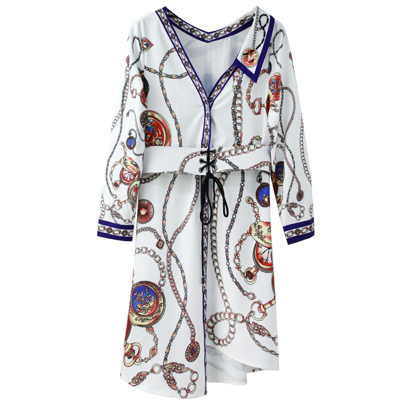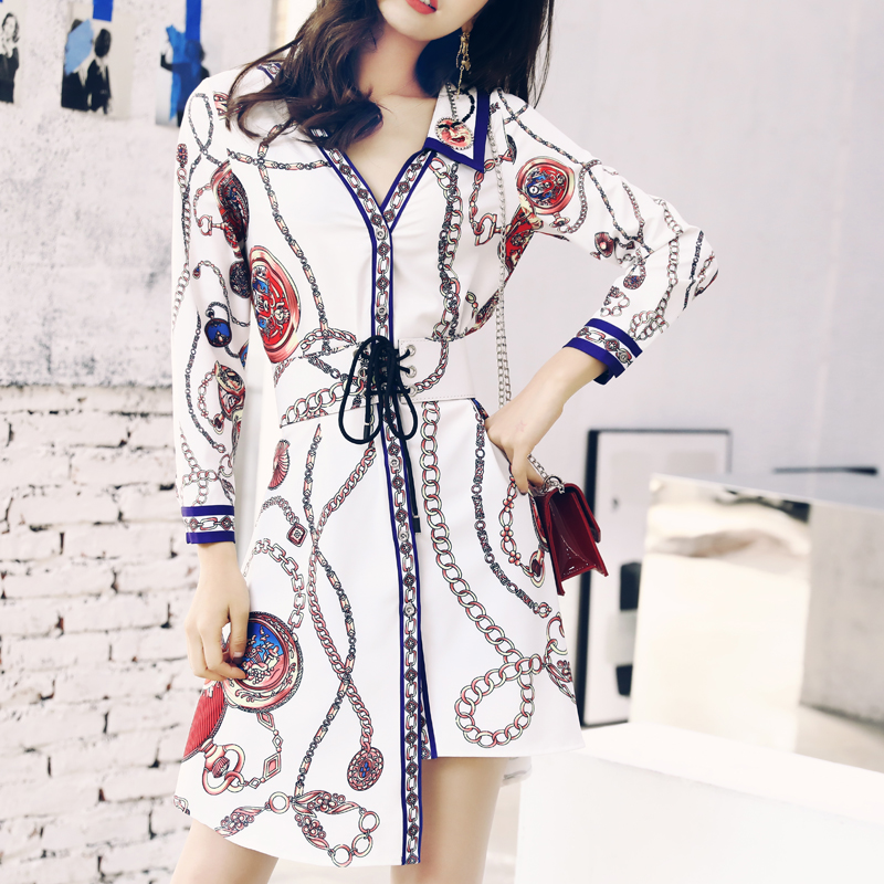 / 名媛2018秋冬新款女法式溫柔風復古印花襯衫不規則氣質連衣裙子潮