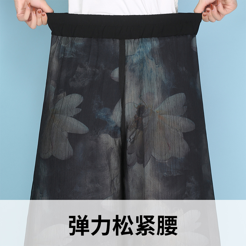 / 闊腿褲女九分褲春夏高腰寬松大碼休閑松緊雪紡寬腿褲裙大腳甩腿褲