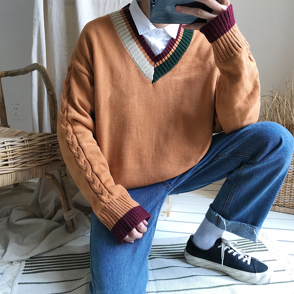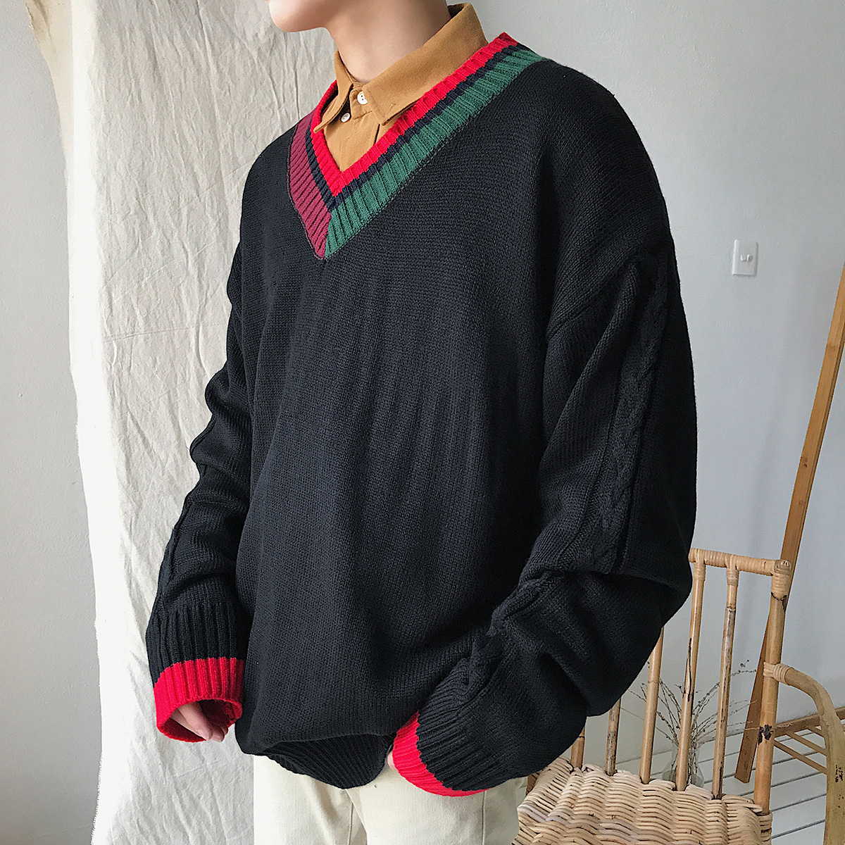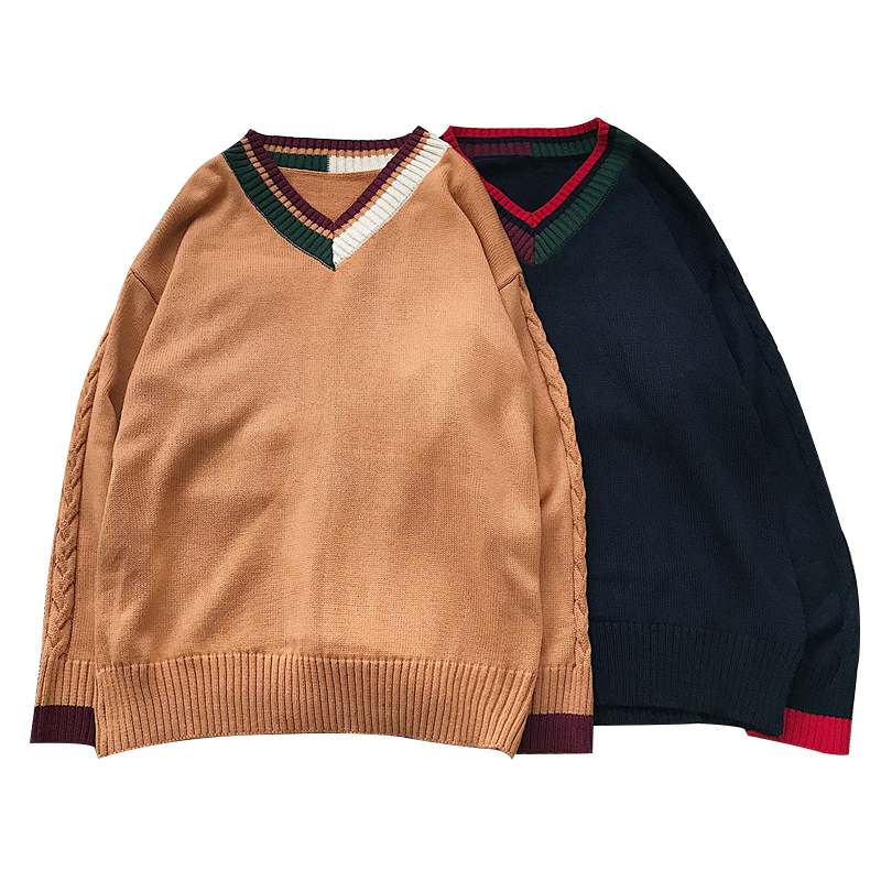 / 文藝男女店V領毛衣男士秋季潮流寬松針織衫新款韓版休閑衣服秋裝