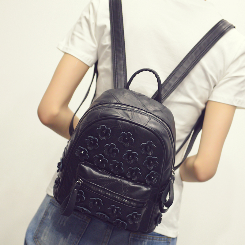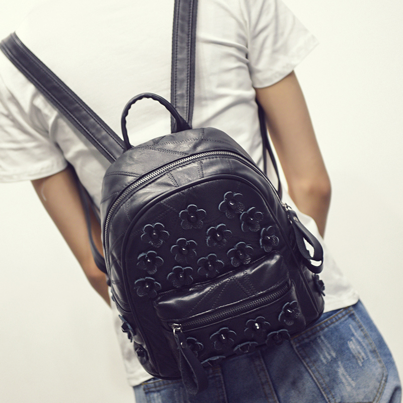 新款雙肩包女韓版潮pu時尚學院風休閑花朵小背包時尚旅行包包