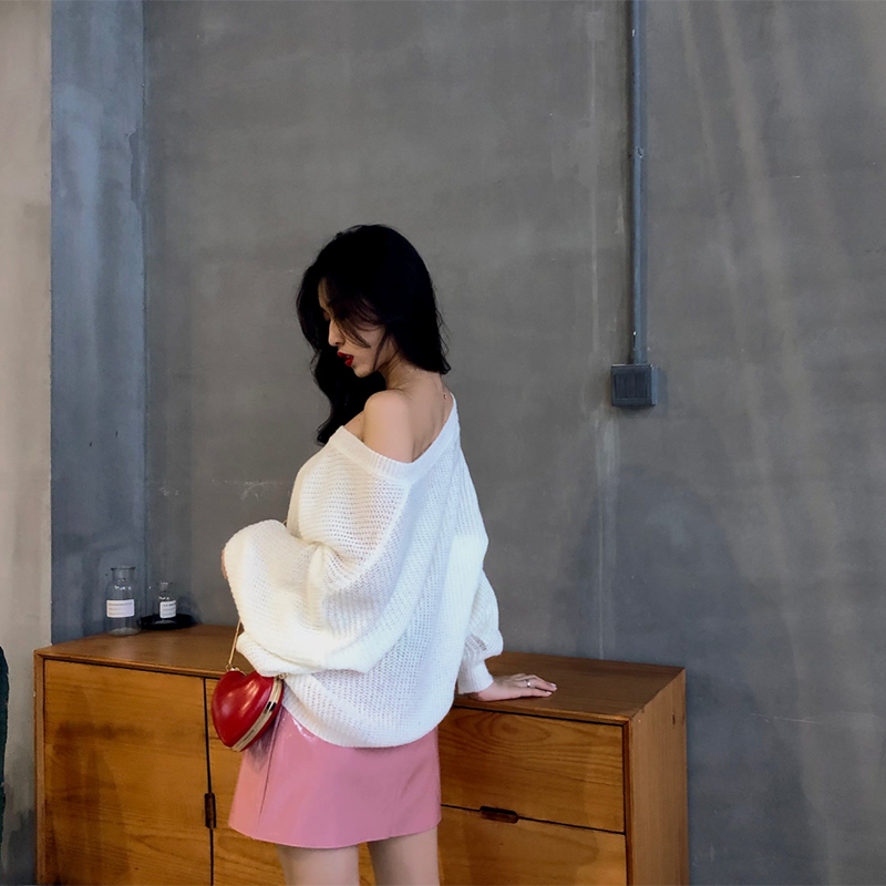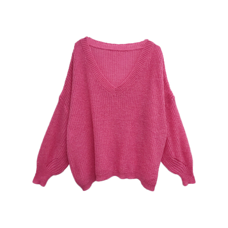 chic早秋上衣慵懶寬松糖果色網紅毛衣女韓版純色時尚V領針織衫潮