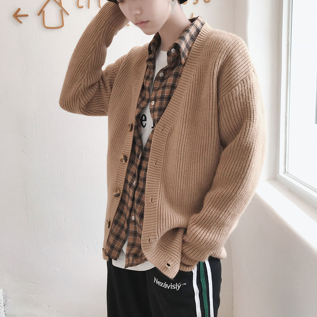 新款男士開衫針織衫寬松休閑潮牌男裝秋季潮流百搭上衣日系衣服男
