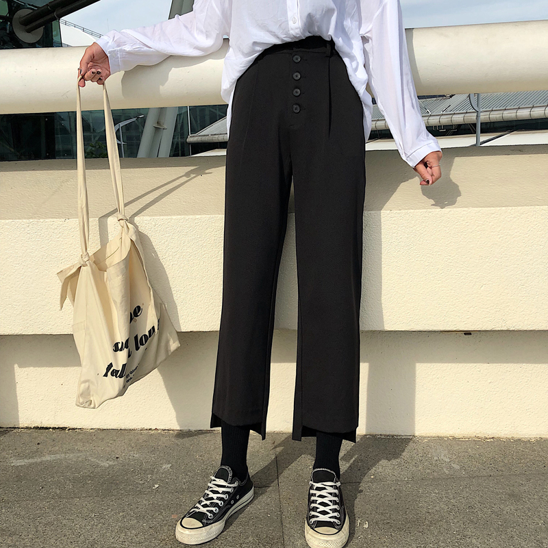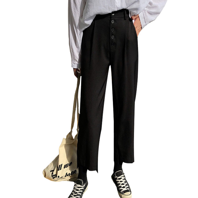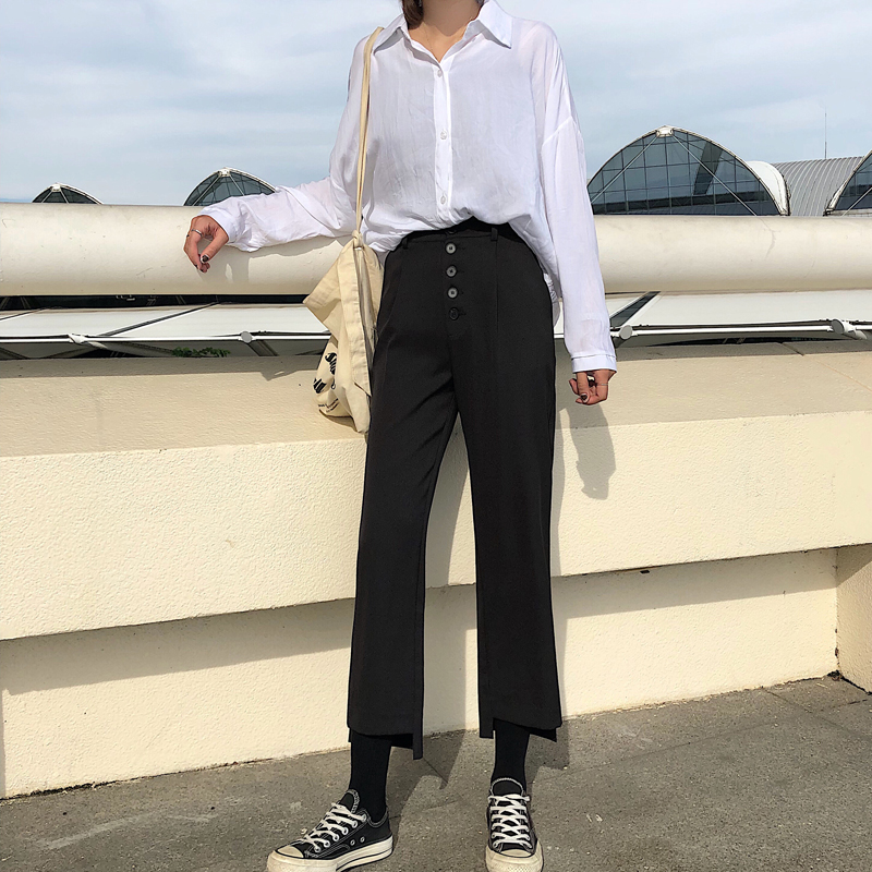 / 夏季女裝韓版高腰單排扣直筒褲學生寬松顯瘦九分褲西裝褲休閑褲潮