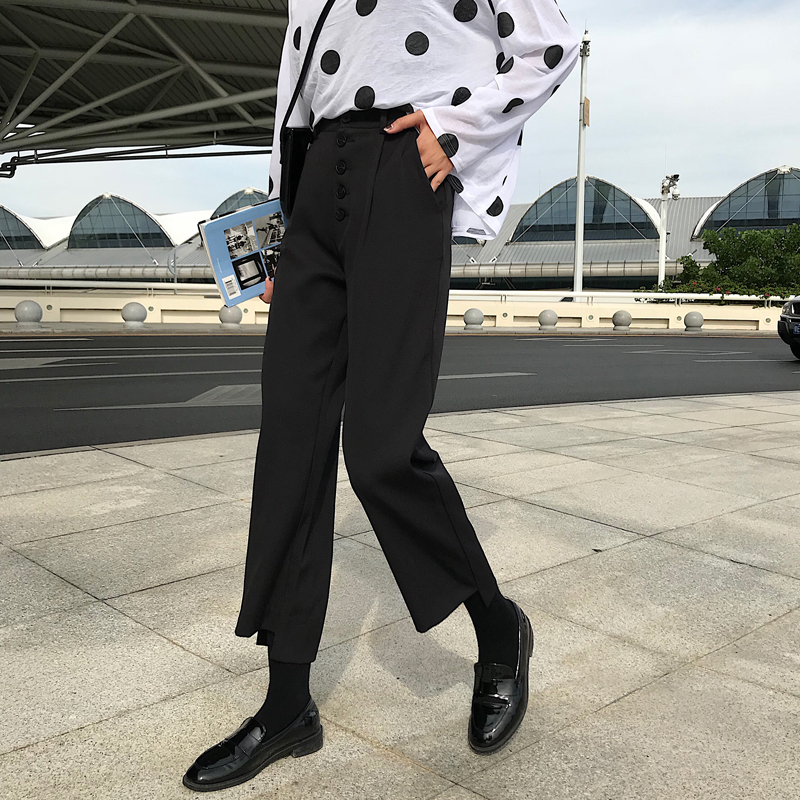 夏季女裝韓版高腰單排扣直筒褲學生寬松顯瘦九分褲西裝褲休閑褲潮