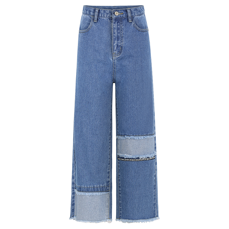 MG小象高腰牛仔褲女個性秋裝2018新款學生寬松港味復古chic風褲子