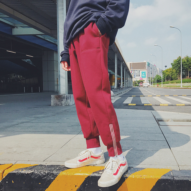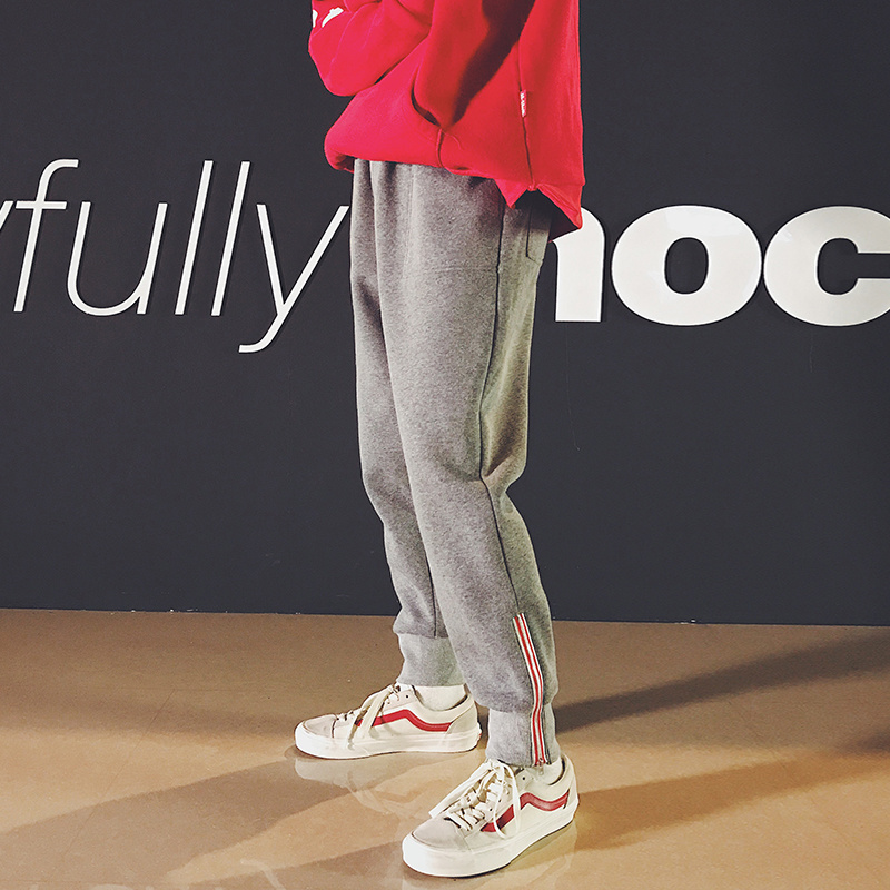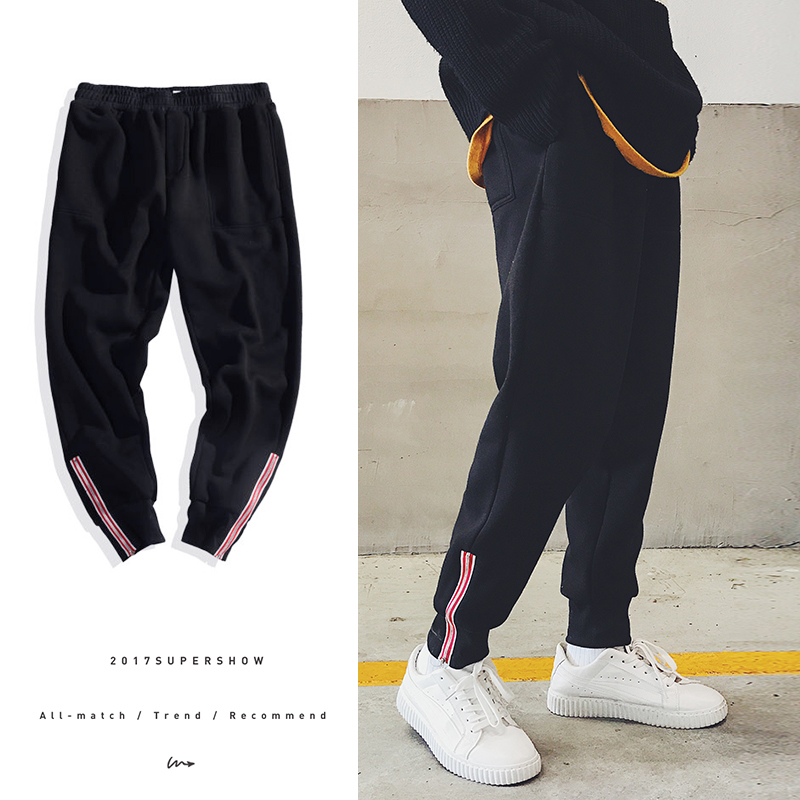 / 文藝男女店冬季男士加絨褲子韓版休閑褲潮流運動褲衛褲加厚束腳褲