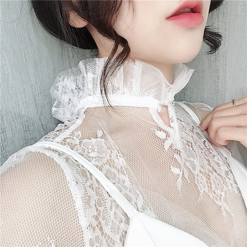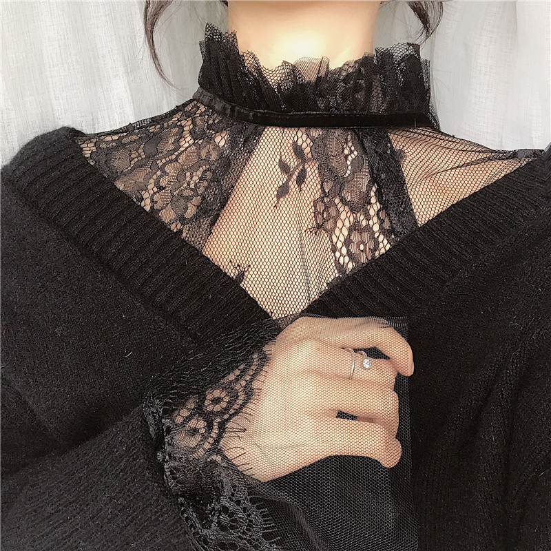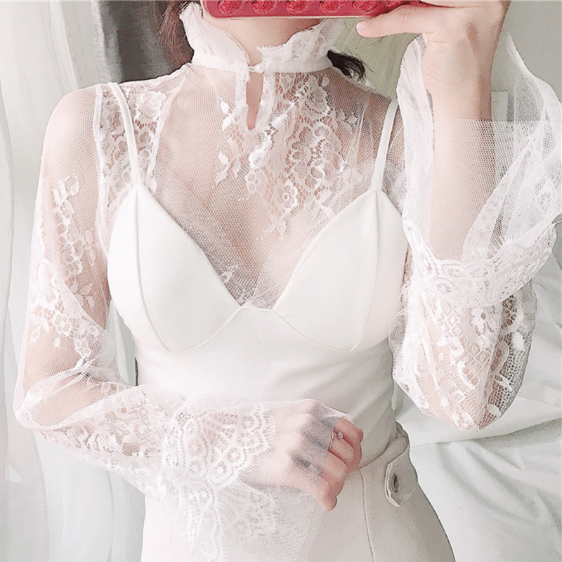 / 秋裝女2018新款韓版透視網紗很仙的上衣修身顯瘦蕾絲長袖打底衫潮