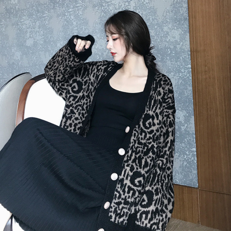 / 慵懶風豹紋針織衫女秋冬裝2018新款學生韓版時尚寬松長袖毛衣外套